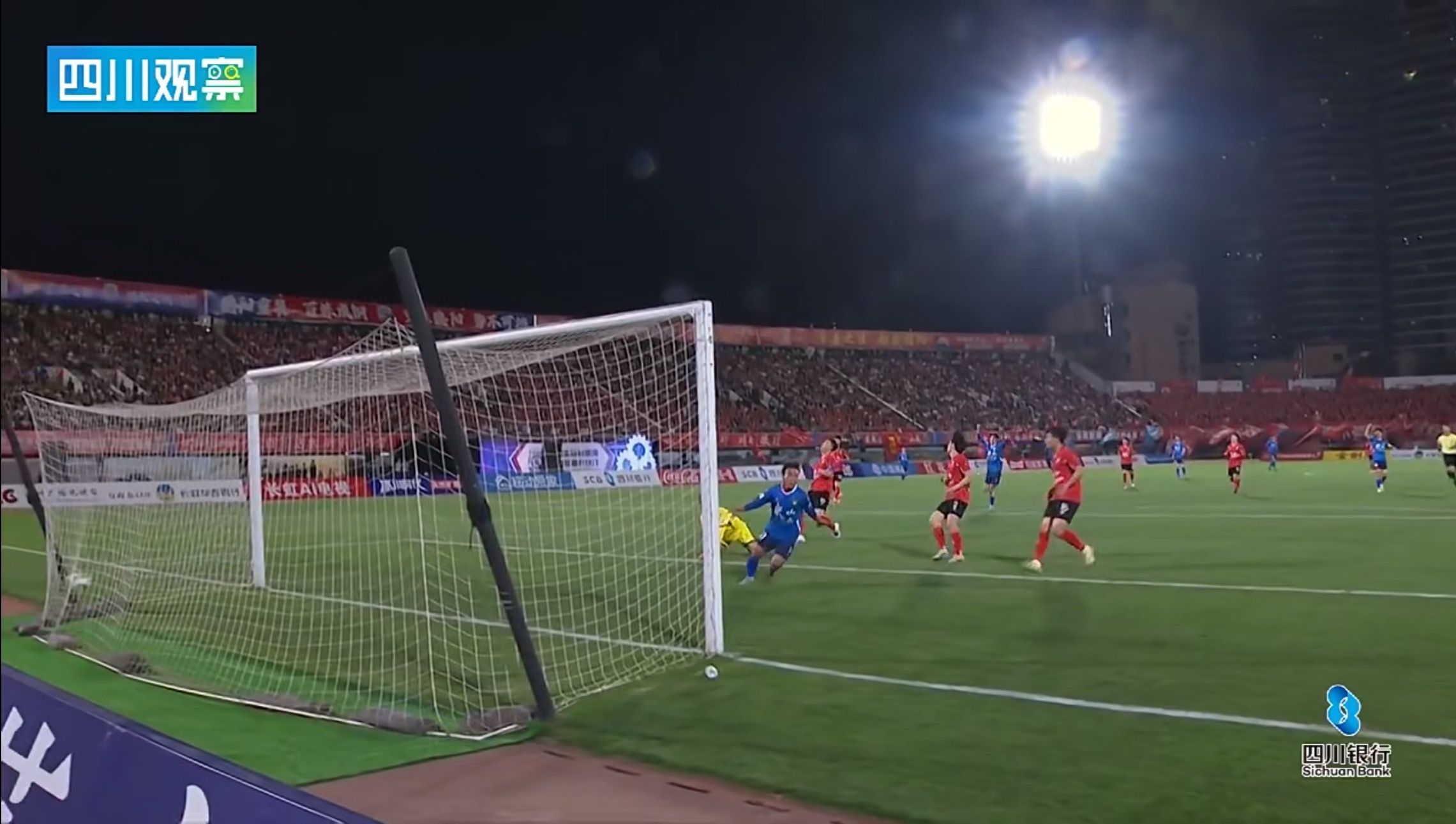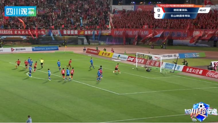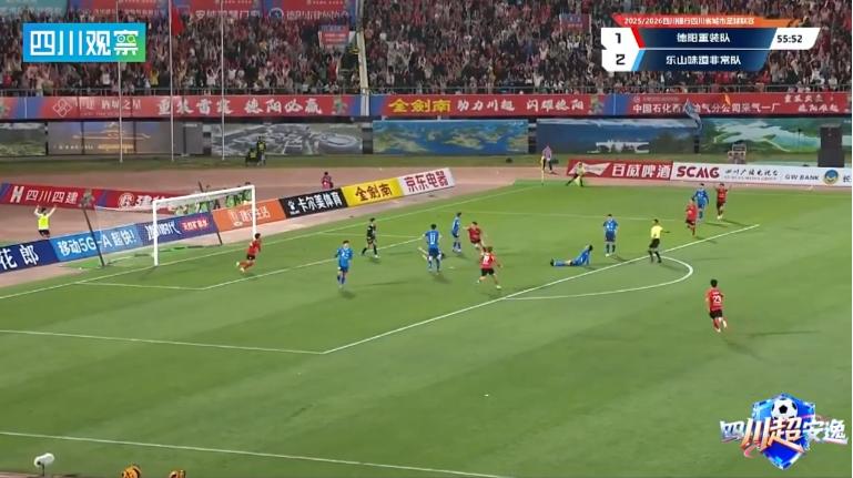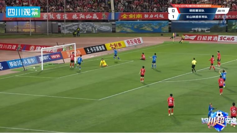 德阳队赢得点球,18号陈明志主罚命中,成功扳回一城。
