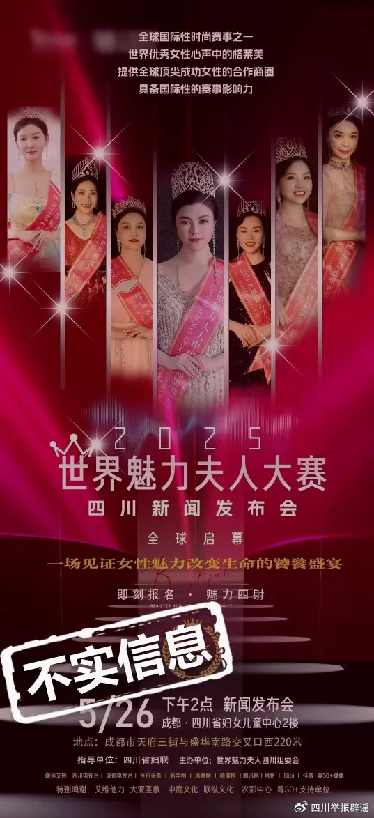 谣言:四川省妇女儿童中心举办“世界魅力夫人大赛”相关活动?