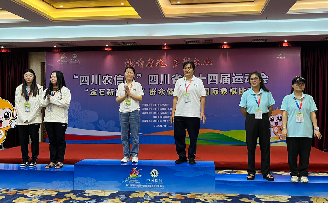 四川省第十四届运动会“金石新能源杯”群众体育项目国际象棋比赛7月12日在乐山市沐川县的竹海大酒店落幕。本次比赛共有来自成都、自贡、德阳、绵阳、乐山、南充、遂宁、宜宾、广安、雅安等10个地市州的代表队参加,成都队共派出8名队员参加了全部五个组别的比赛,经过努力拼搏夺得5个项目中的4金1银,排名第一。