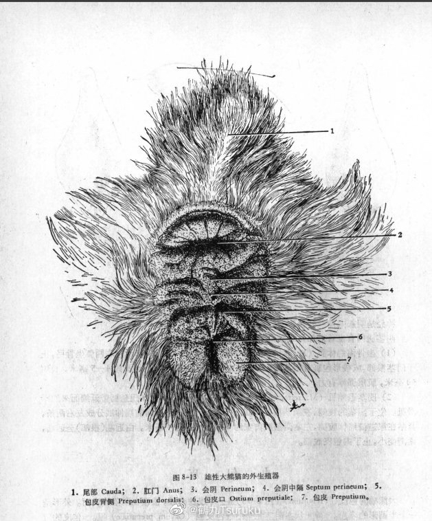 也有网友通过查阅《大熊猫解剖 系统解剖和器官组织学》一书并对比照片,发现“大熊猫直肠粘膜向外翻转移行为皮肤,放射状褶皱,大量肛门腺,表面可见散在腺体开口。”证实“添添”照片中即是大熊猫肛门正常状态。