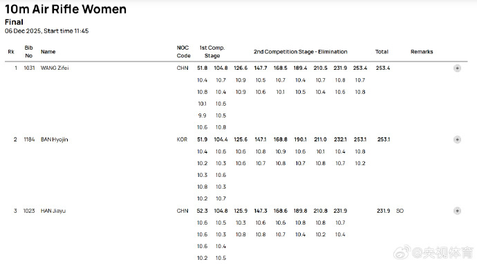 射击世界杯总决赛王子菲夺冠 央视新闻客户端 2025-12-06 23:01 63427 2025射击世界杯总决赛女子10米气步枪决赛,三位中国选手黄雨婷、韩佳予、王子菲闯进决赛。最终,王子菲夺得冠军,韩佳予收获季军,黄雨婷位列第五名。 评论 1 屋顶榭寄生 2025-12-06 发表于四川 祝贺🎉 我要评论