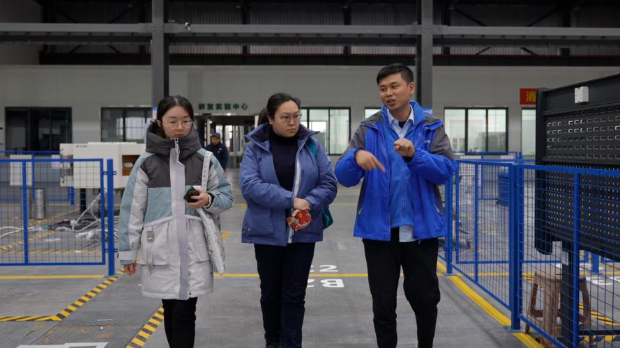 玖谊源技术部经理杜洋(右一)、封面新闻记者闫雯雯(中)、封面新闻记者谭羽清(左一)