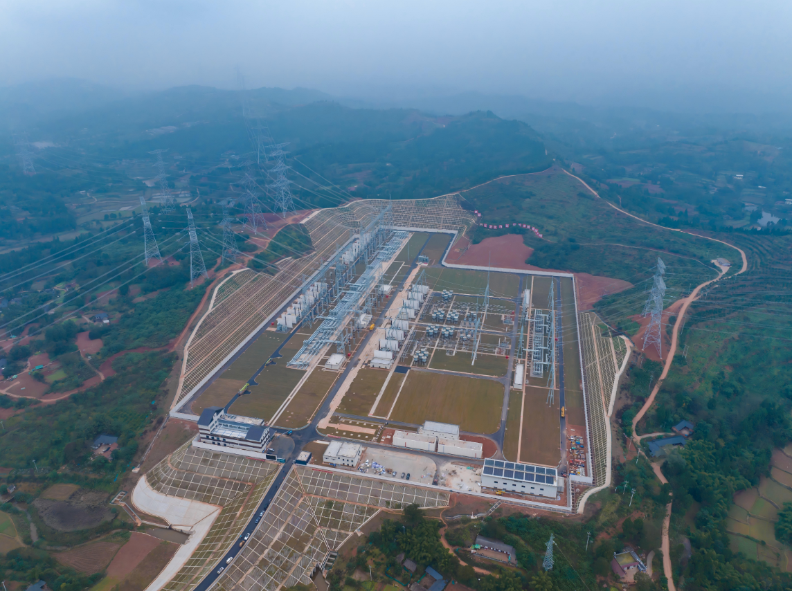 天府南1000千伏特高压变电站于2024年投运,新开工的攀西特高压交流工程将对天府南站进行扩建。(严晶铖 摄)