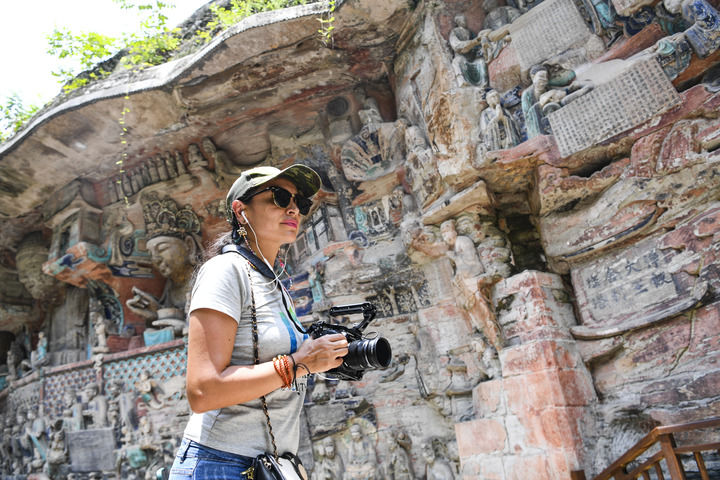外籍游客在重庆大足石刻景区游览(2024年7月19日摄)。新华社记者 王全超 摄