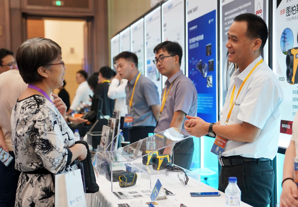 在第七届进博会技术装备、汽车展区展前供需对接会现场,展商工作人员(右)向采购商介绍企业产品(2024年8月8日摄)。新华社发(陈浩明 摄)