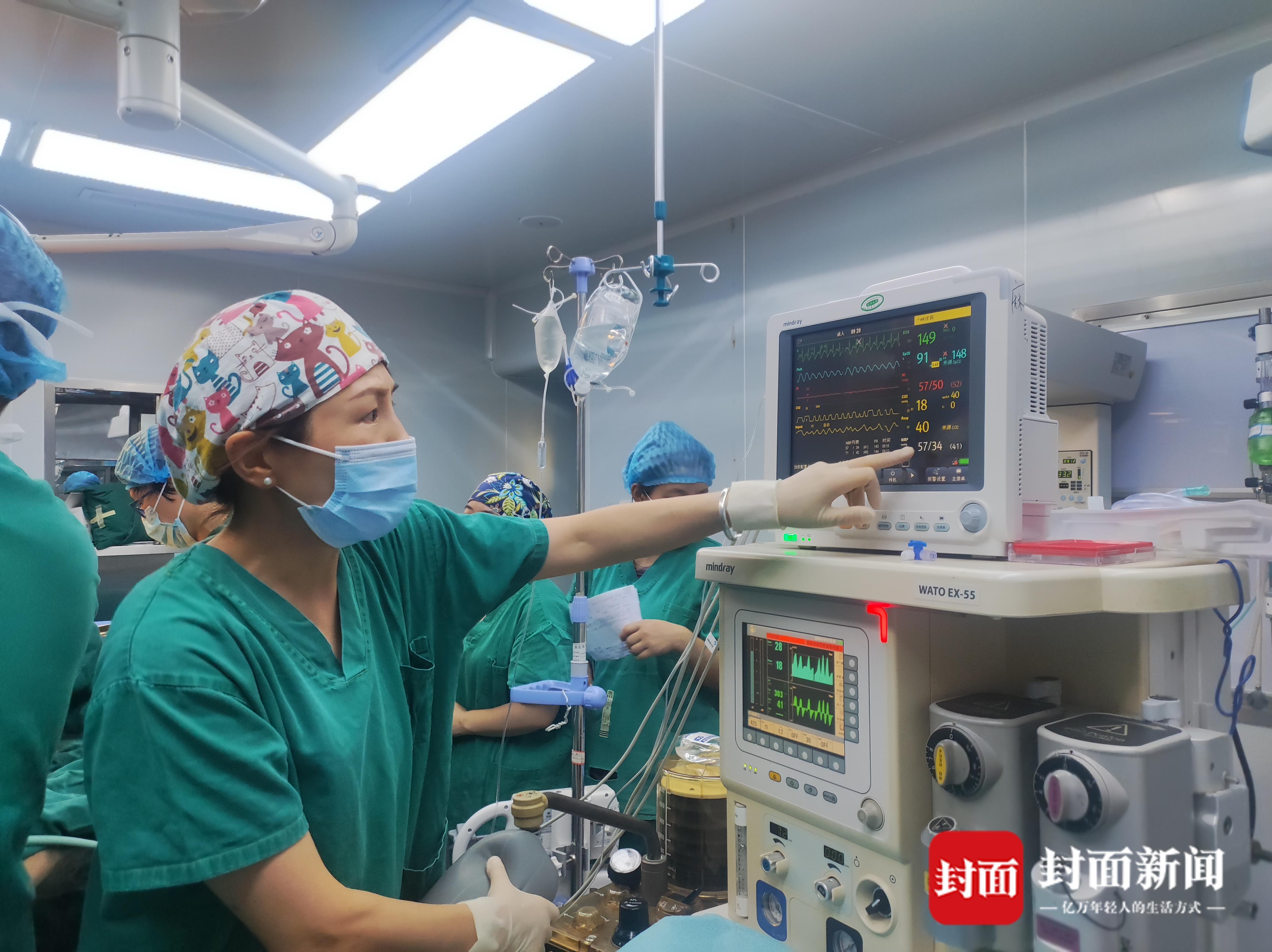 这是一场生死抢救。孕妇被以最快的速度推进了手术室,此时,手术室里的周燕等麻醉科团队医生已做好准备。