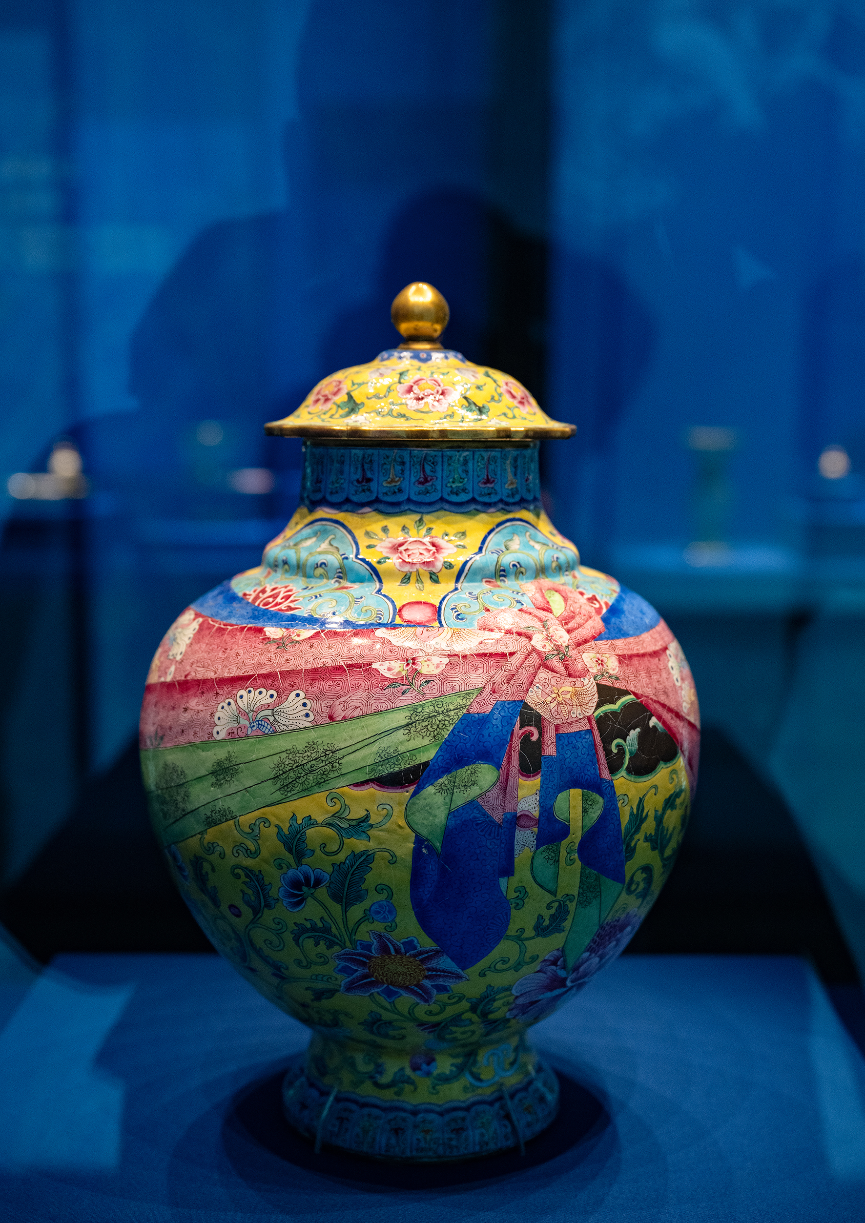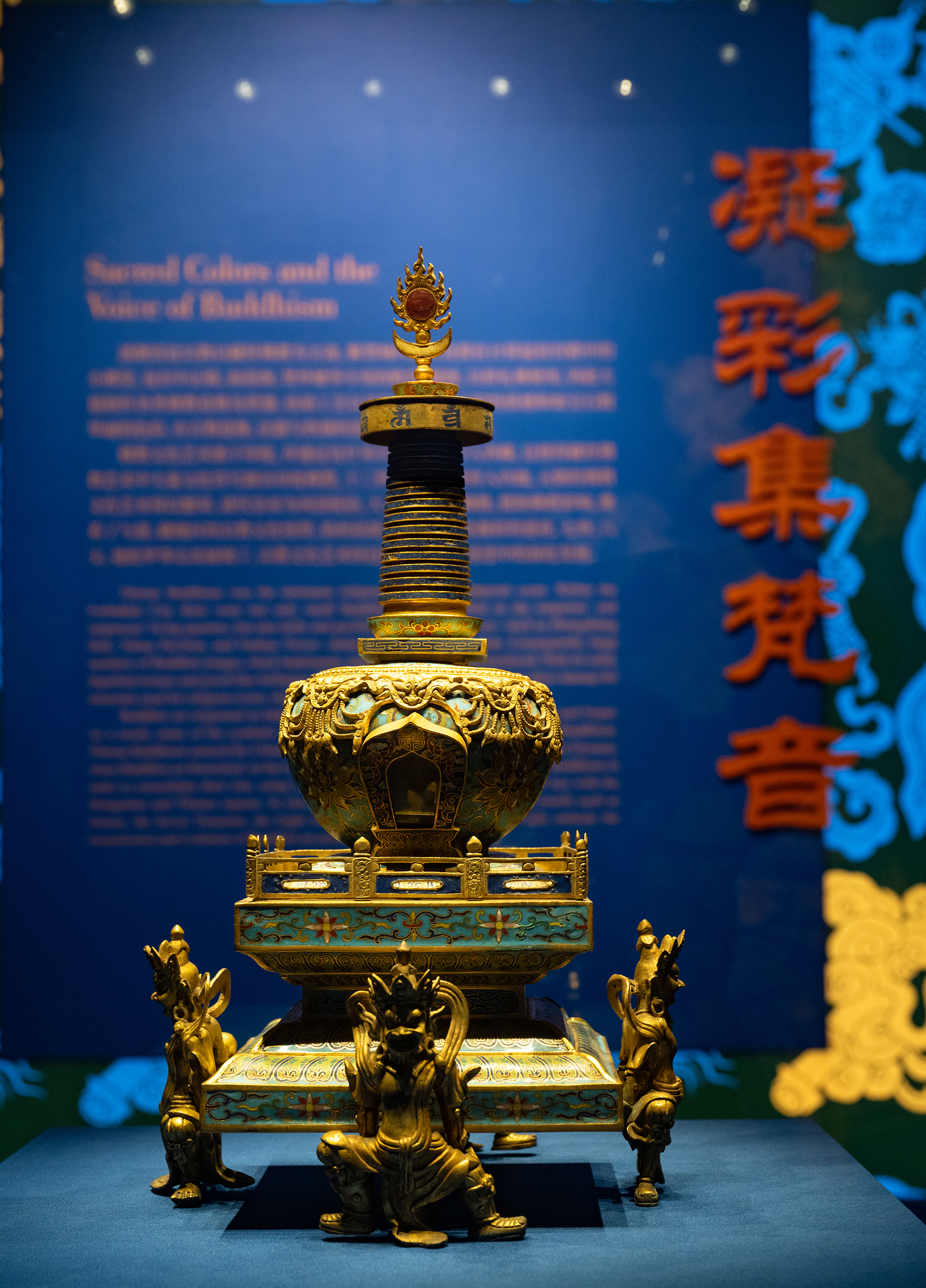 此次参展的宫廷珐琅器,集冶金、铸造、绘画等多种工艺于一体,是中华优秀传统文化的璀璨瑰宝。展览分为“宝色流芳华”“斑斓映宫苑”“凝彩集梵音”三个单元,以时间为主线,涵盖掐丝珐琅、画珐琅两大工艺种类,系统呈现出珐琅器从唐、宋至元、明、清三代的艺术传承与历史流变,以及其在清代宫廷生活中的使用形式。