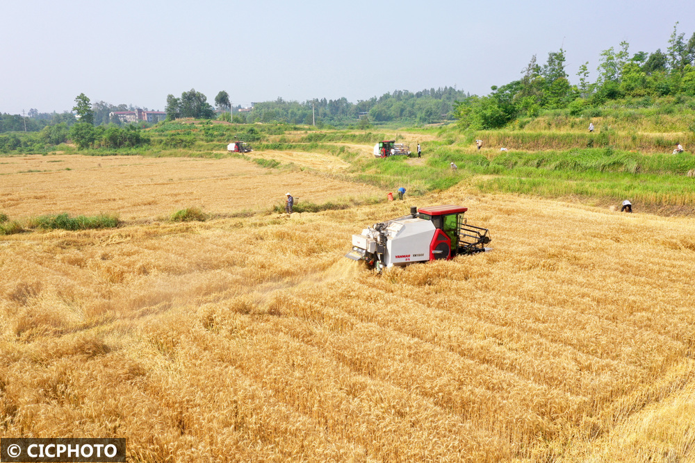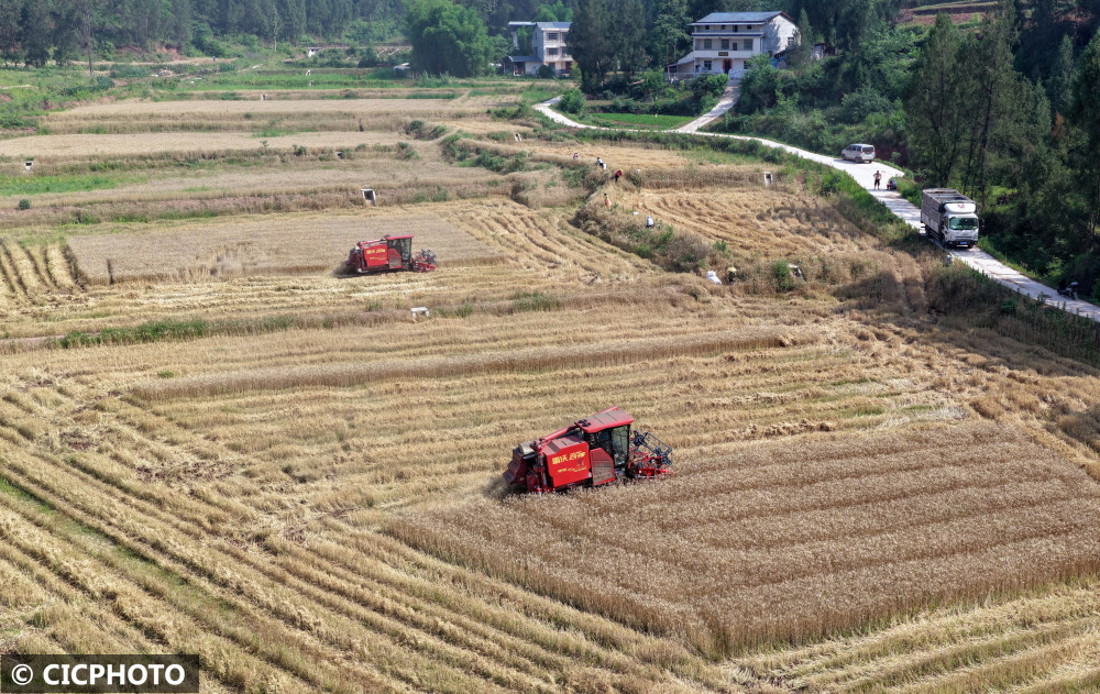 近期,我国多地油菜、小麦、大麦、早稻陆续成熟,当地农民抢抓农时收获粮油作物,田间地头一派繁忙。