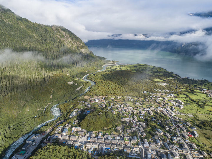 这是2023年7月20日拍摄的西藏林芝市工布江达县错高乡结巴村景色(无人机照片)。新华社记者 孙非 摄