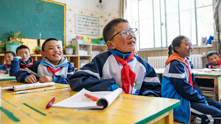 2024年9月3日,西藏林芝市工布江达县娘蒲乡中心小学五年级的学生在上课。新华社记者 丁增尼达 摄