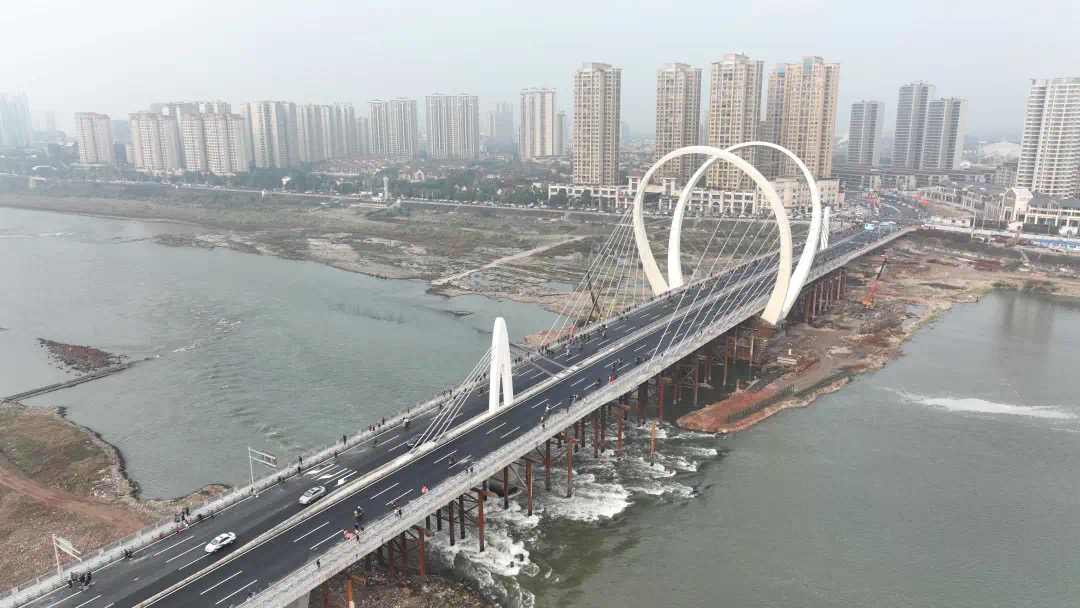 11月5日,随着第一批车辆驶入崭新的桥面,横跨彭山岷江两岸,全长509米、桥宽32.5米的彭山岷江大桥试通车。