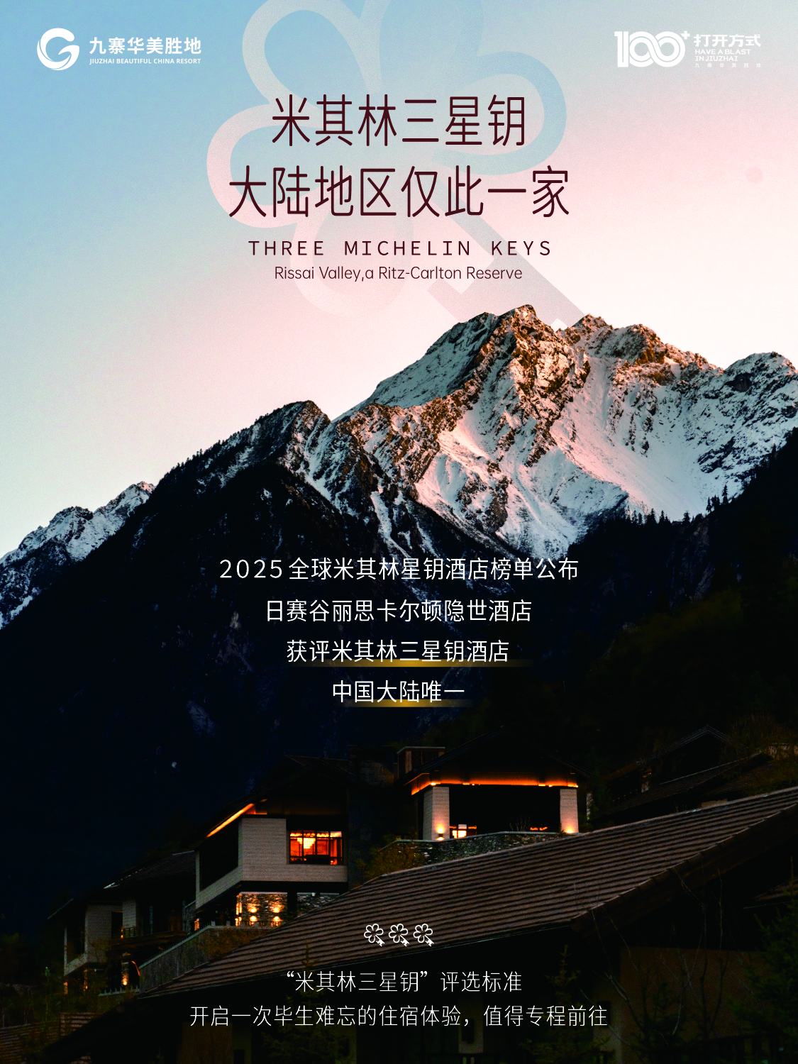 近日,米其林指南公布首版全球米其林星钥酒店榜单,位于九寨华美胜地的日赛谷丽思卡尔顿隐世酒店获得最高三星钥殊荣,也是中国大陆唯一获此殊荣的酒店。