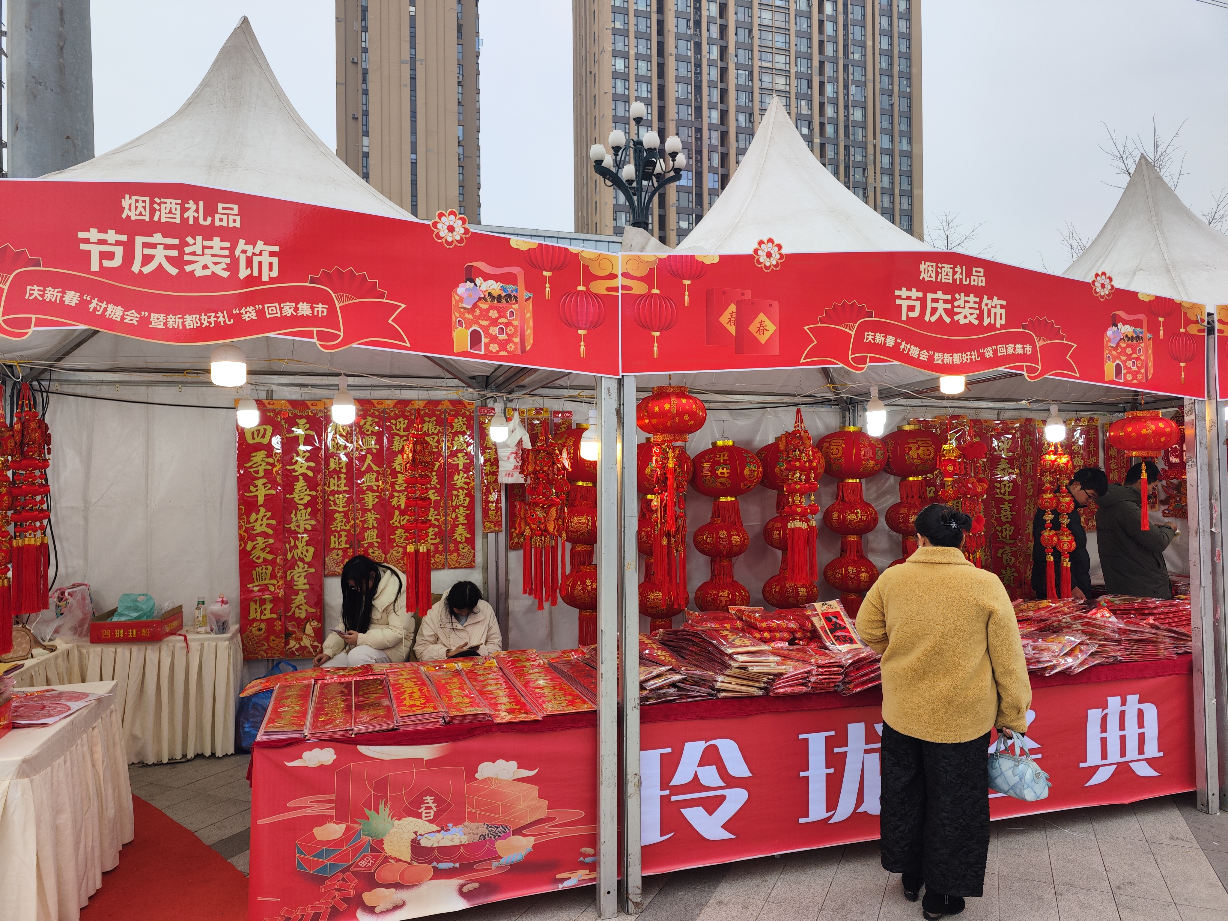 会场右侧,“年货礼购区”红火热闹,炒货飘香、腊味润泽,羽绒服、厨卫用品、家居家纺琳琅满目,春联年画更添喜庆。这不仅是年货的聚集,更是一场生动的本土文化展演——从舌尖到掌心,从传统到创意,新都的烟火与人情,正被一一装入沉甸甸的购物袋中。