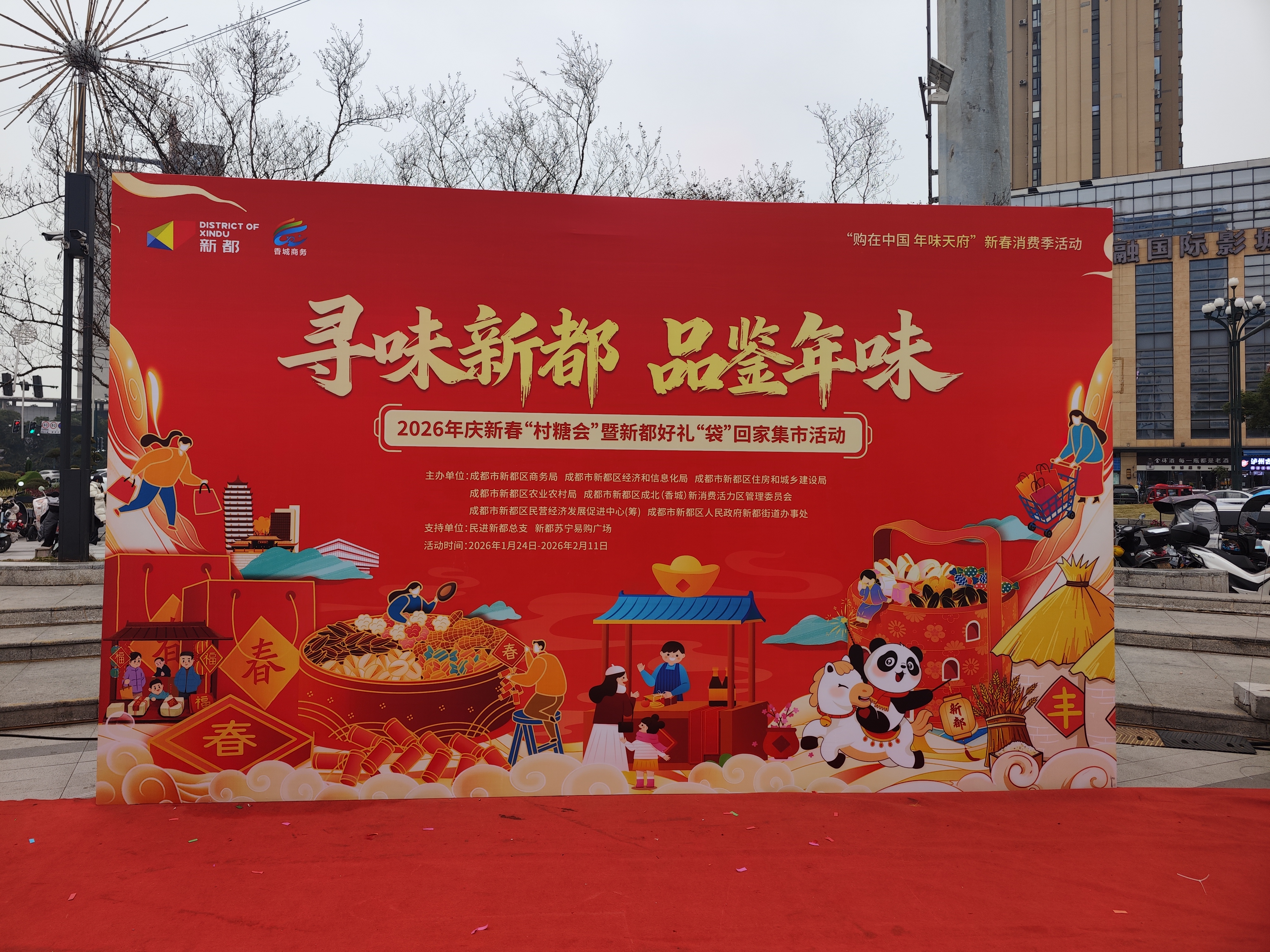 锣鼓声声响新春,集市烟火暖人心。1月24日,2026年庆新春“村糖会”暨新都好礼“袋”回家集市活动在新都苏宁易购广场热闹启幕。
