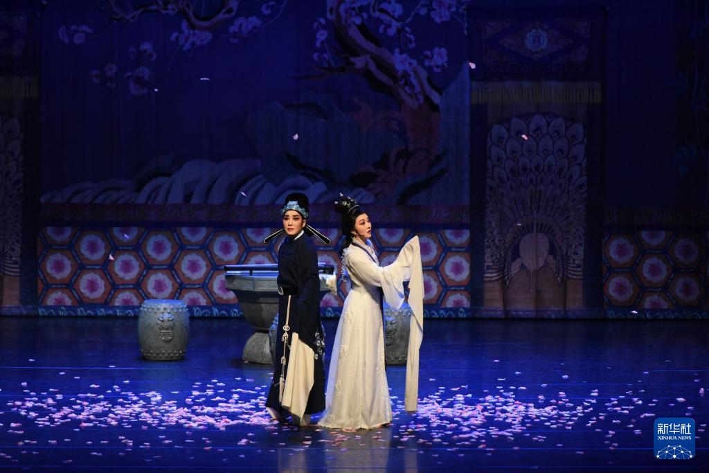 浙江小百花越剧院青春越剧《我的大观园》在桃园展演中心演出(2月25日摄)。新华社记者 黄扬 摄