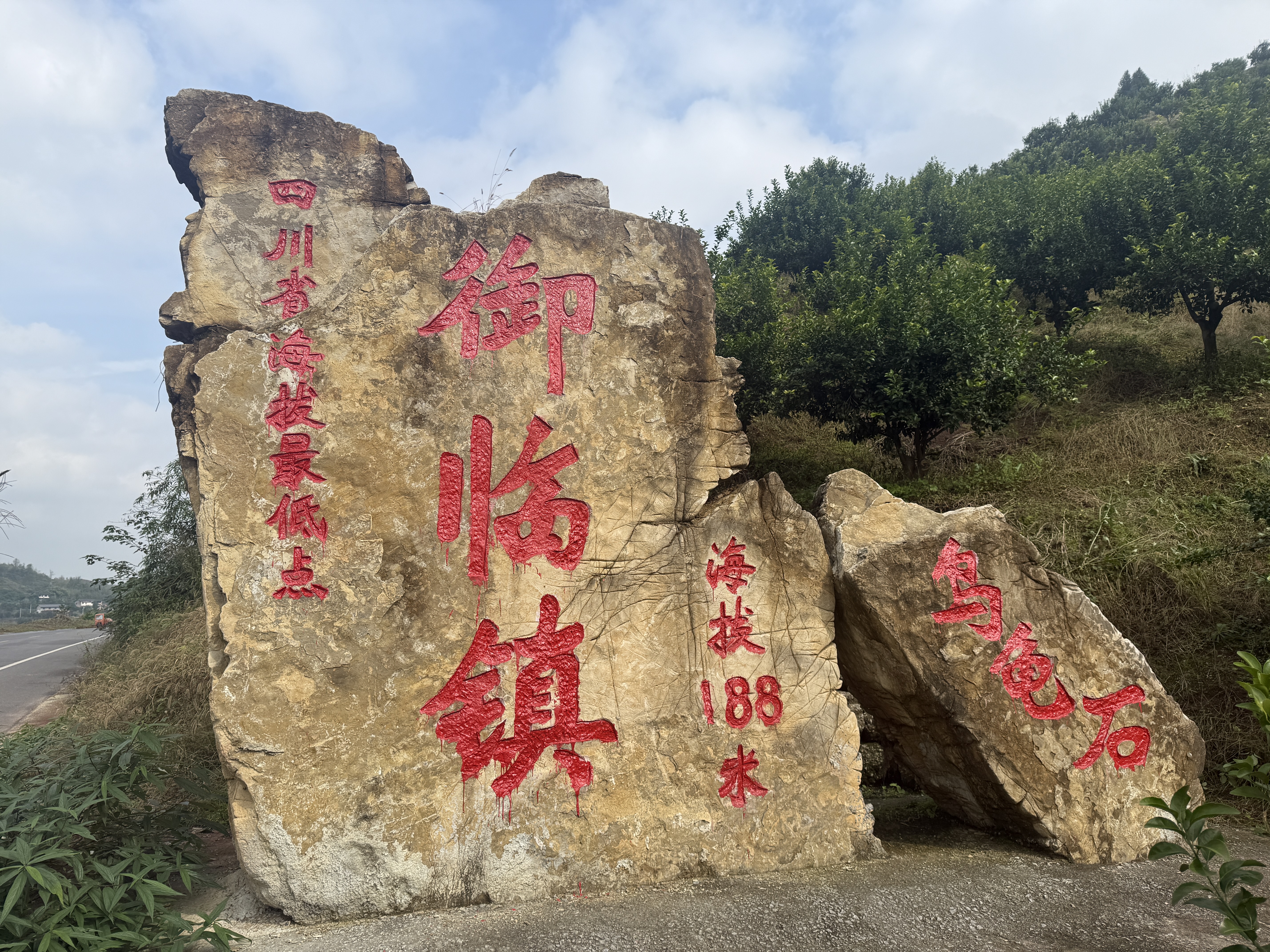 公路边,两块石碑上刻着“四川省海拔最低点,御临镇,海拔188米,乌龟石”。再往东走约200米,竹林茂盛处,便是重庆市长寿区。