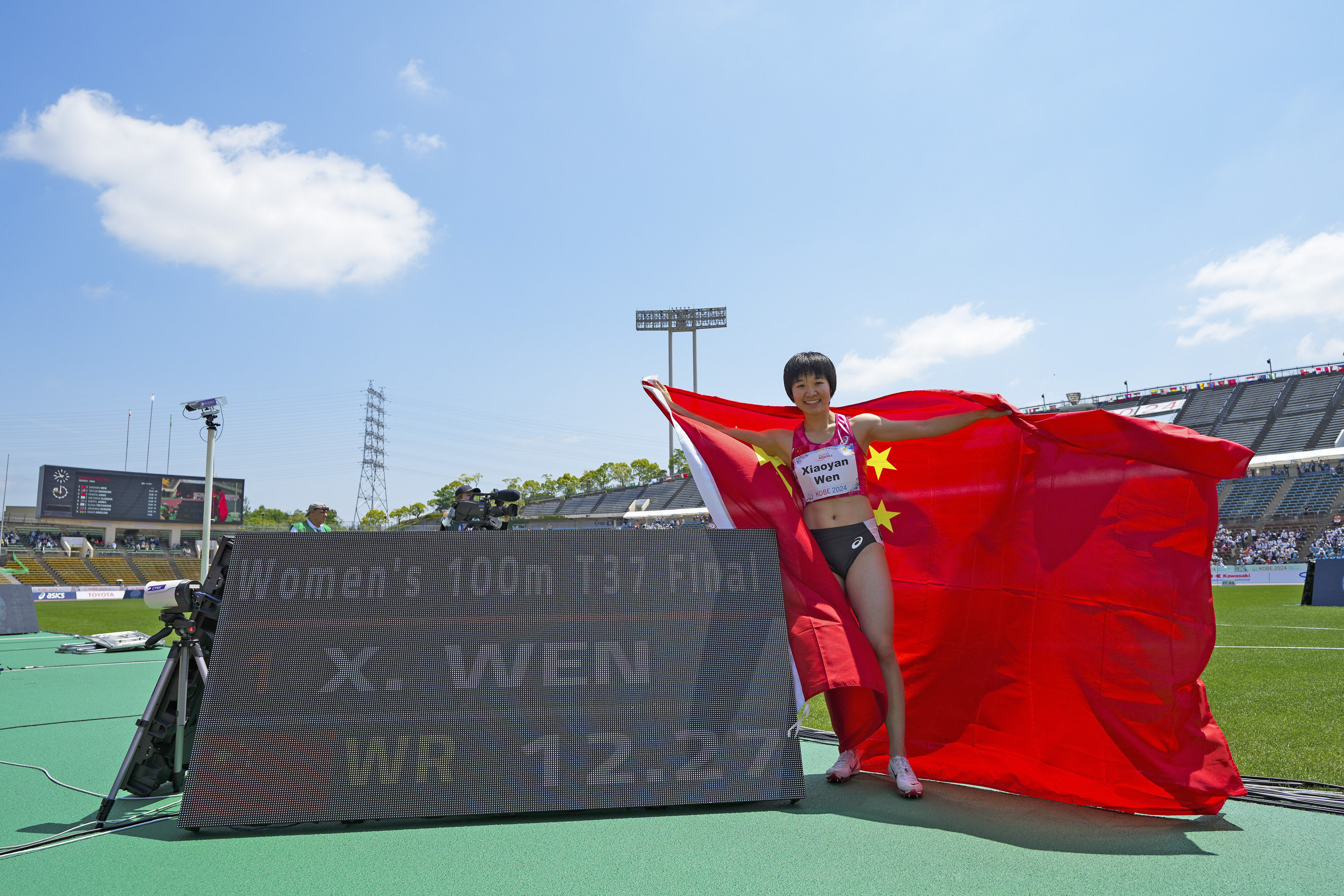 在21日进行的女子100米T37级决赛中,文晓燕以一骑绝尘的12秒27摘金,刷新了她去年在杭州亚残运会上创造的世界纪录。继跳远T37级破世锦赛纪录夺冠后,收获了个人本届赛事的第二金。