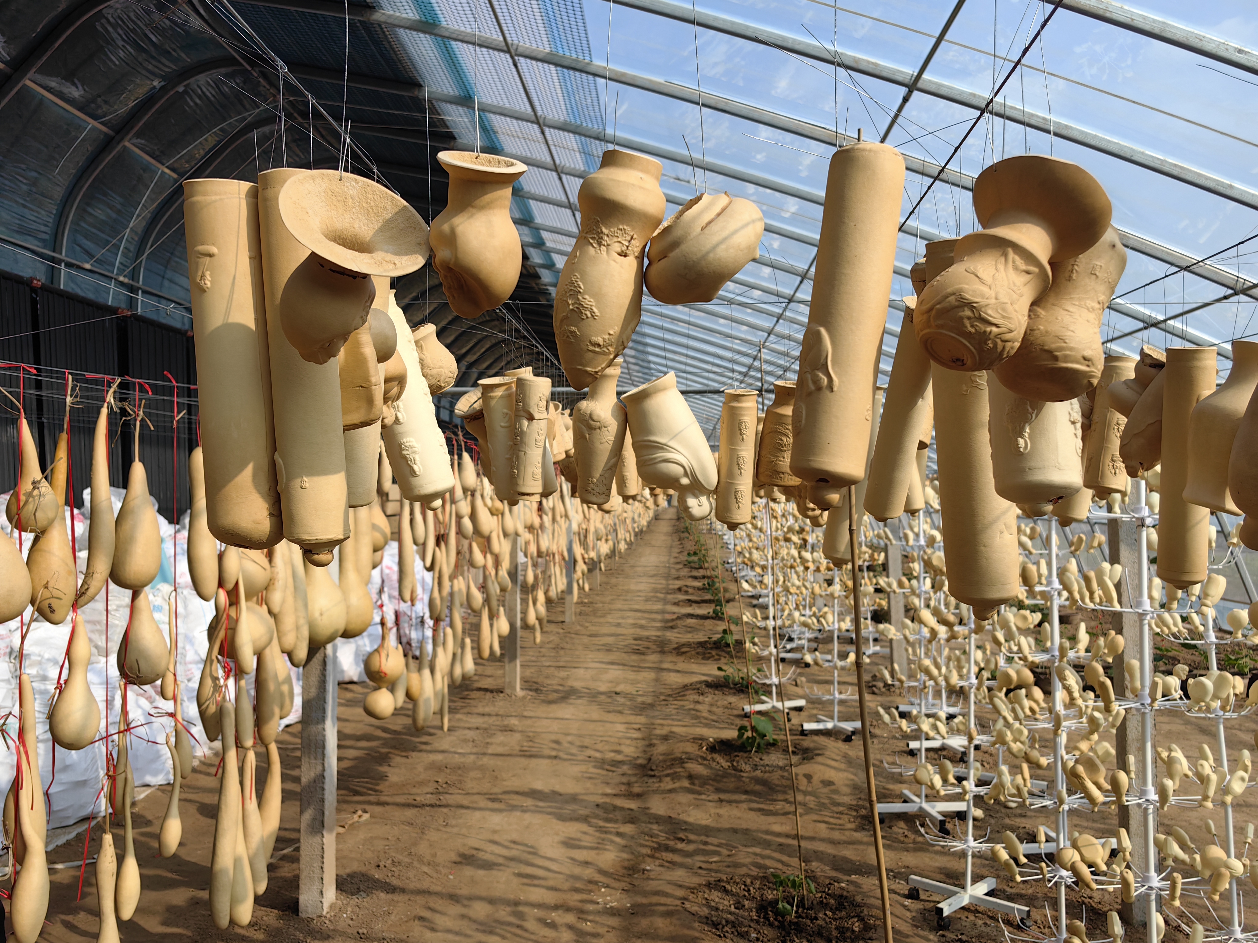眼下是收获季节,当地随处可见晾晒葫芦、加工销售的场景,但当地人并非只“鼓捣”圆的葫芦。