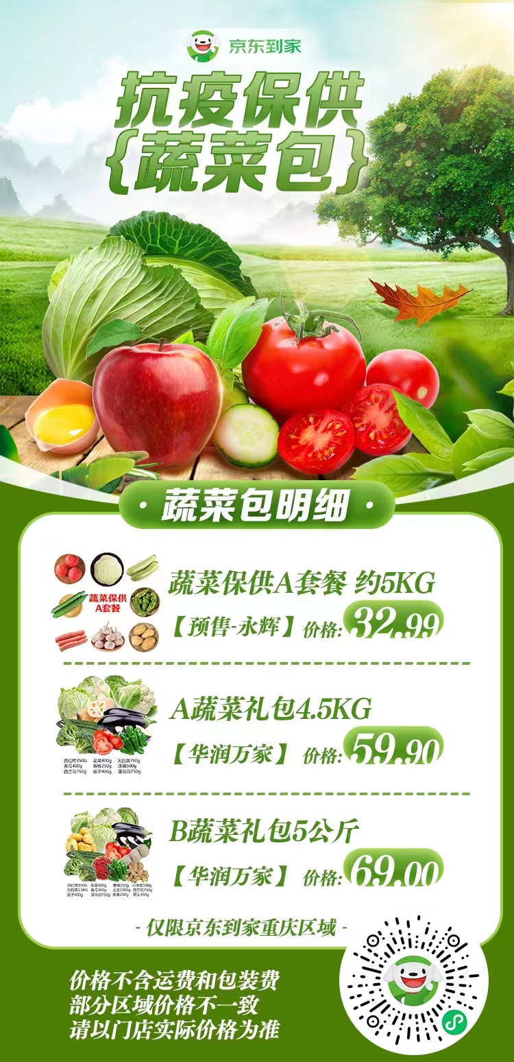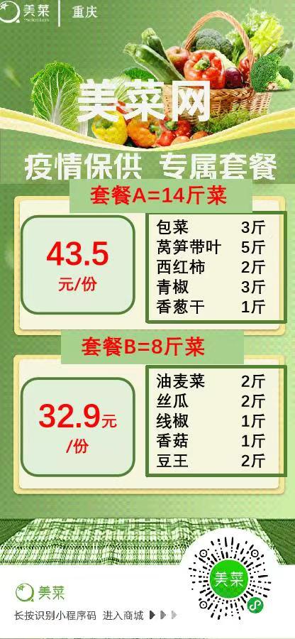 11月18日,封面新闻从重庆市商务委获悉,为有效阻断病毒传播途径,更好调集运用生活物资在线供应资源,保障疫情期间市民生活物资需求,重庆各电商平台陆续上线“蔬菜包”,在蔬菜品质、种类搭配、价格控制、配送安全等方面严格管理,竭力让市民吃上新鲜蔬菜。