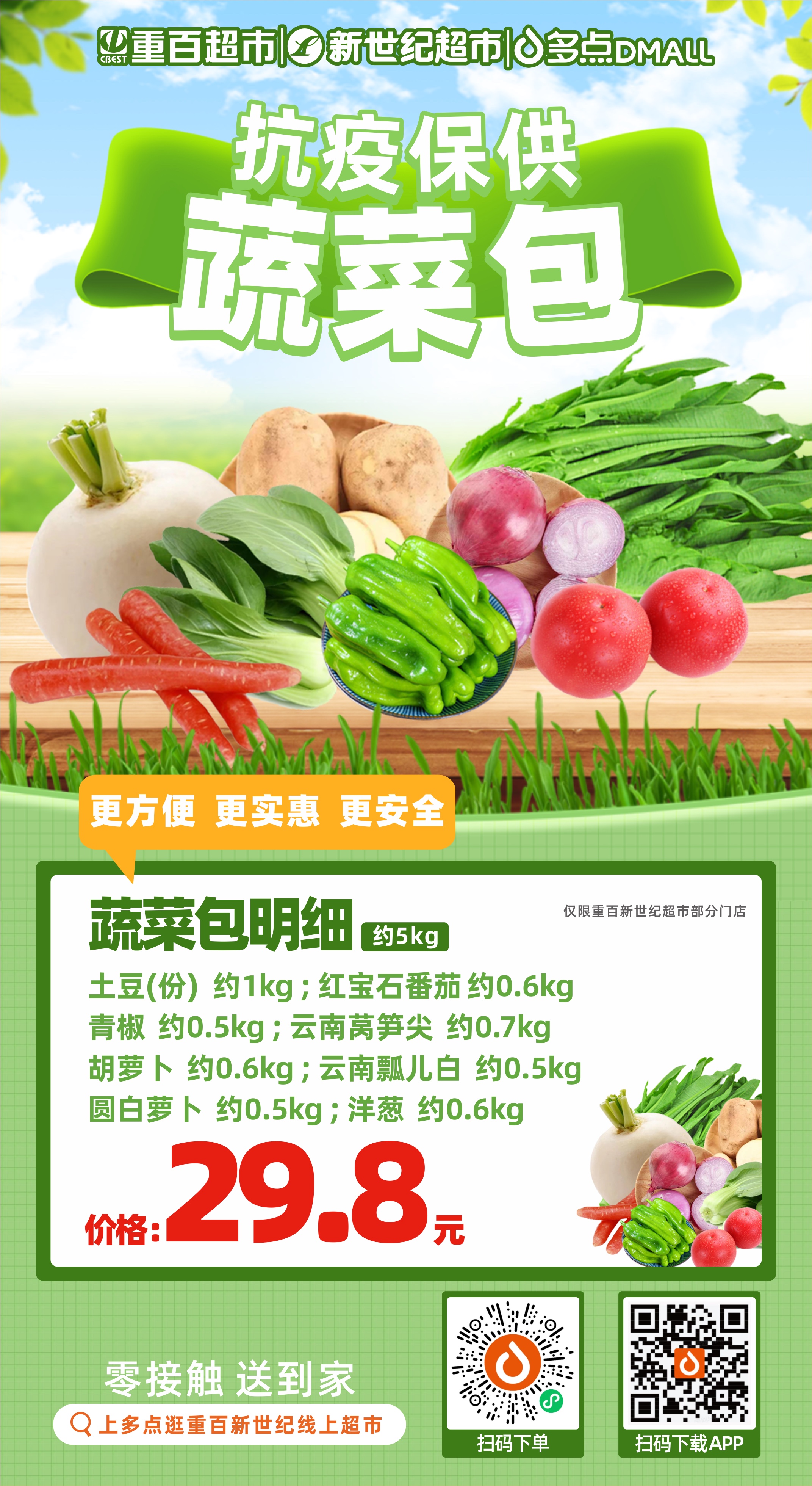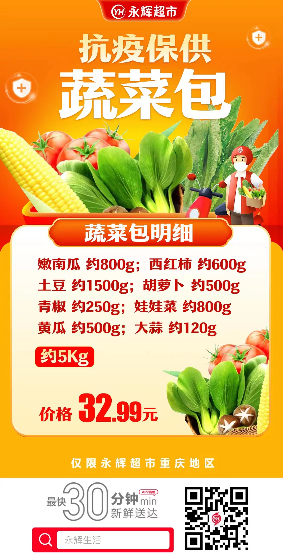 据悉,配送蔬菜大多为当天采摘,通过各地保供物流专门通道,经各电商平台送至居民手中。主要根据时令季节和重庆居民饮食习惯,为3-5人家庭提供2-3天的蔬菜组合。一般搭配娃娃菜、青椒、萝卜、无筋豆、西红柿等营养均衡、容易储存的蔬菜,蔬菜品类价位均可自主选择,既符合大众需要,又满足个性化需求。