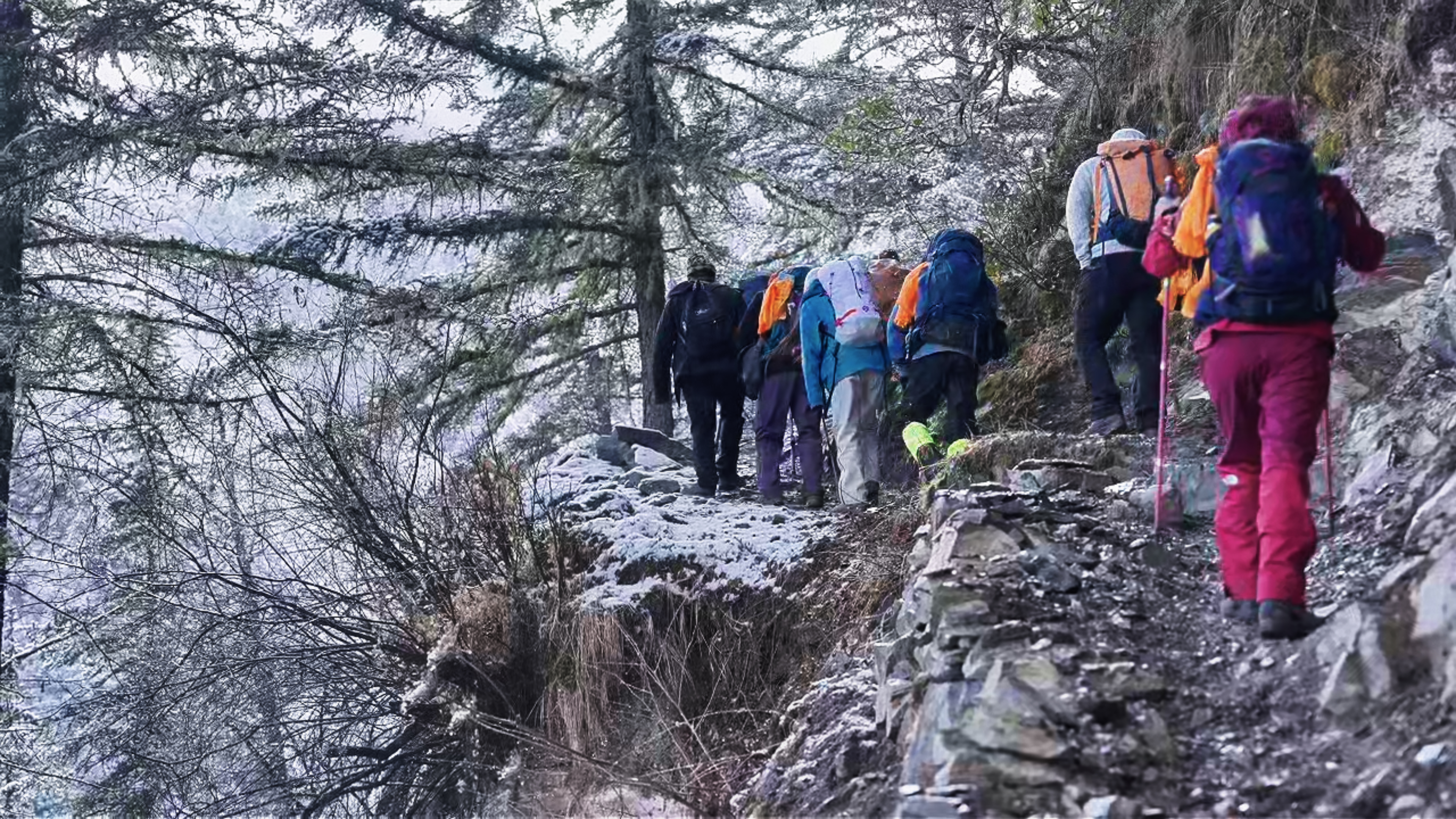 刘先生曾有过冈仁波齐、卡瓦博格转山经验,此次他从杭州飞往成都,再自驾前往胆扎村,正是为了体验技术攀登的魅力。“第一次体验雪过膝盖,川西雪山的魅力相当‘哇噻’,不虚此行。”重庆的肆月同样表示,除了绳索升降挑战,沿途山色壮观、风貌万千,徒步时心情也更轻快。