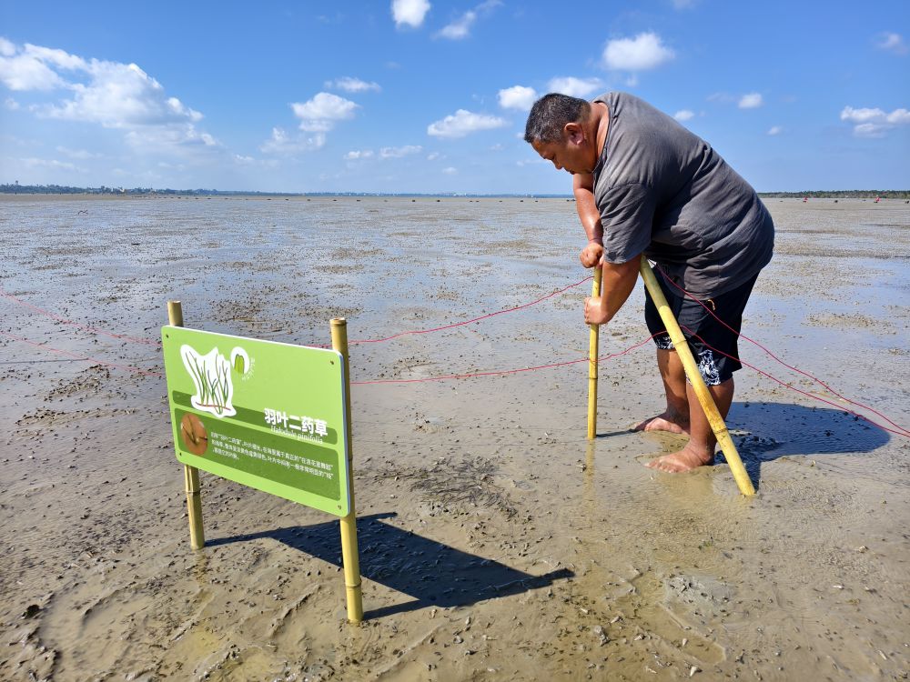 北港村村民安装海草科普牌及围栏。新华社发
