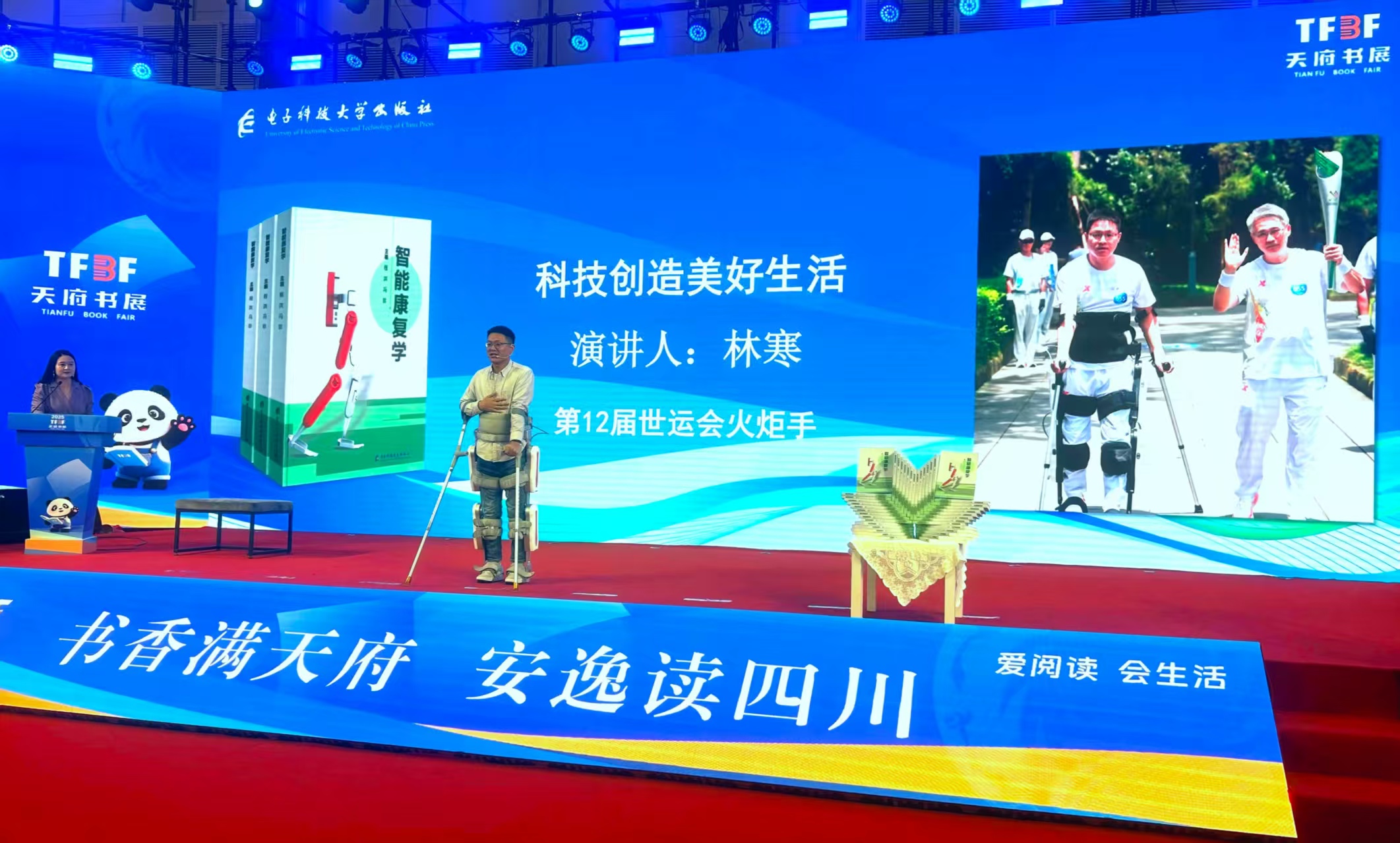 天府书展不仅有好书、精彩文创,更有前沿科技新风向!10月18日,“人工智能+康复学进展与趋势报告暨科技创造美好生活”体验分享会,在书展线下主会场举行。本次活动由电子科技大学出版社与电子科技大学机器人研究中心联合主办,汇聚了来自四川省肿瘤医院、成都新都区中医医院等医疗机构的康复专家,以及电子科技大学、成都体育学院等科研单位的学者代表,共同探讨人工智能技术如何重塑康复医学,为“健康中国”建设注入新动能。