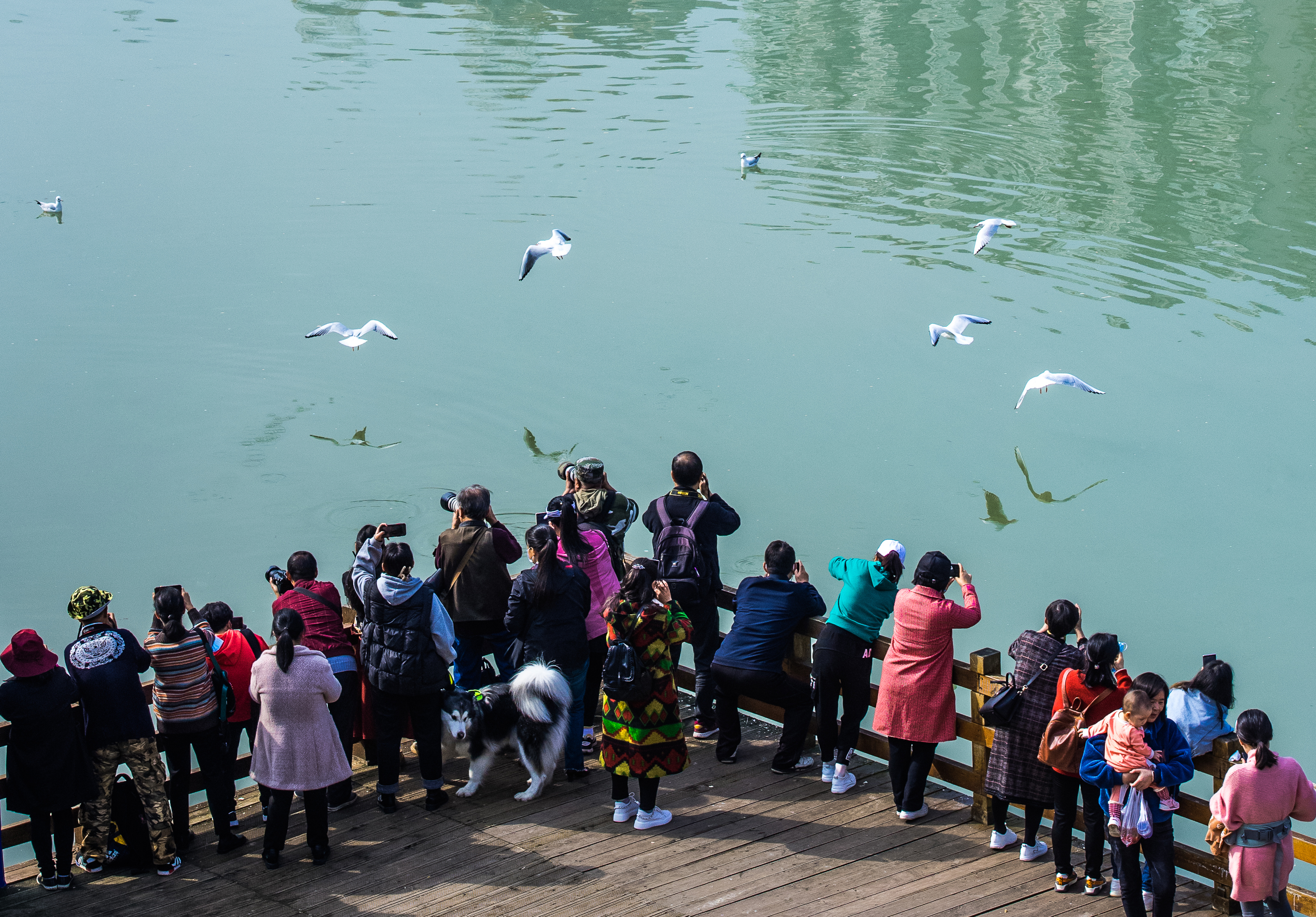 甜城湖畔迎来海鸥歇脚