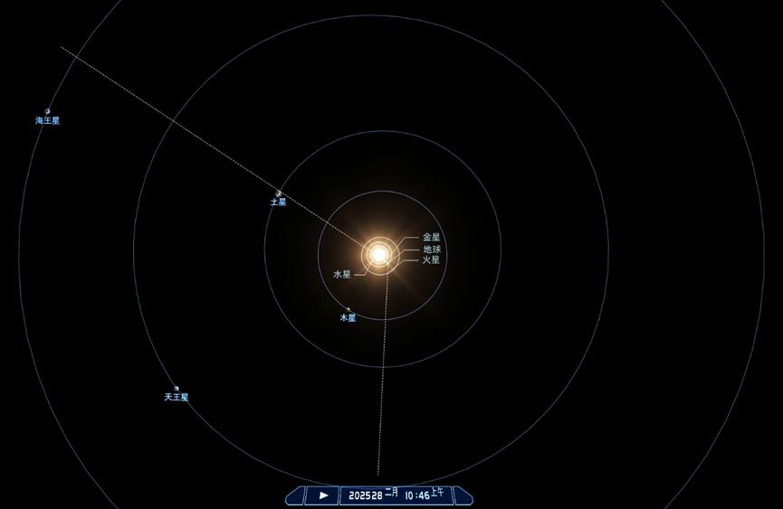 模拟2025年2月28日太阳系空间视角。上海天文馆供图