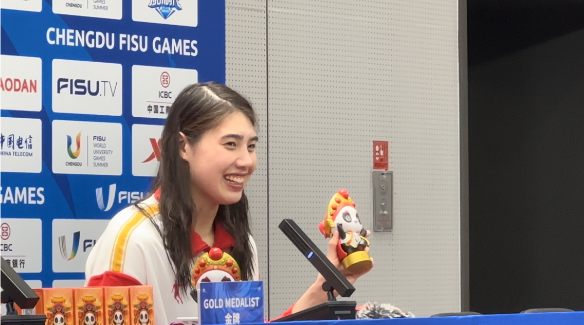 张雨霏在8月1日赛后召开的发布会上表示,更多时候她是以专业运动员的身份参加比赛,这次作为大学生运动员在成都参赛,她非常高兴。
