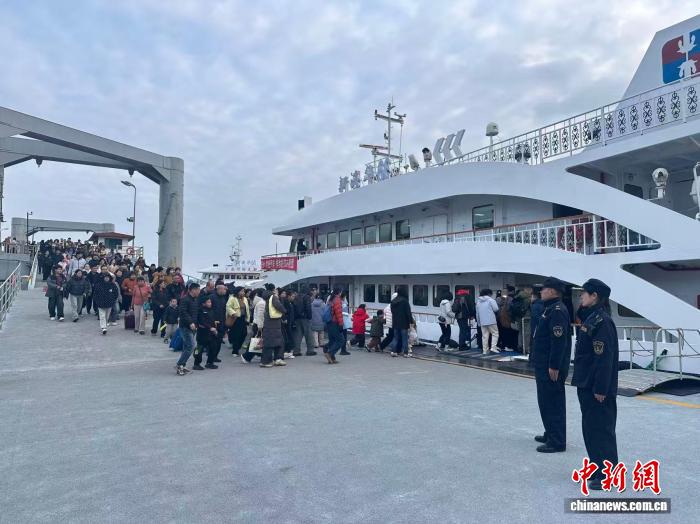 18日,大批游客乘船前往普陀山景区。浙江海事局供图中新网
