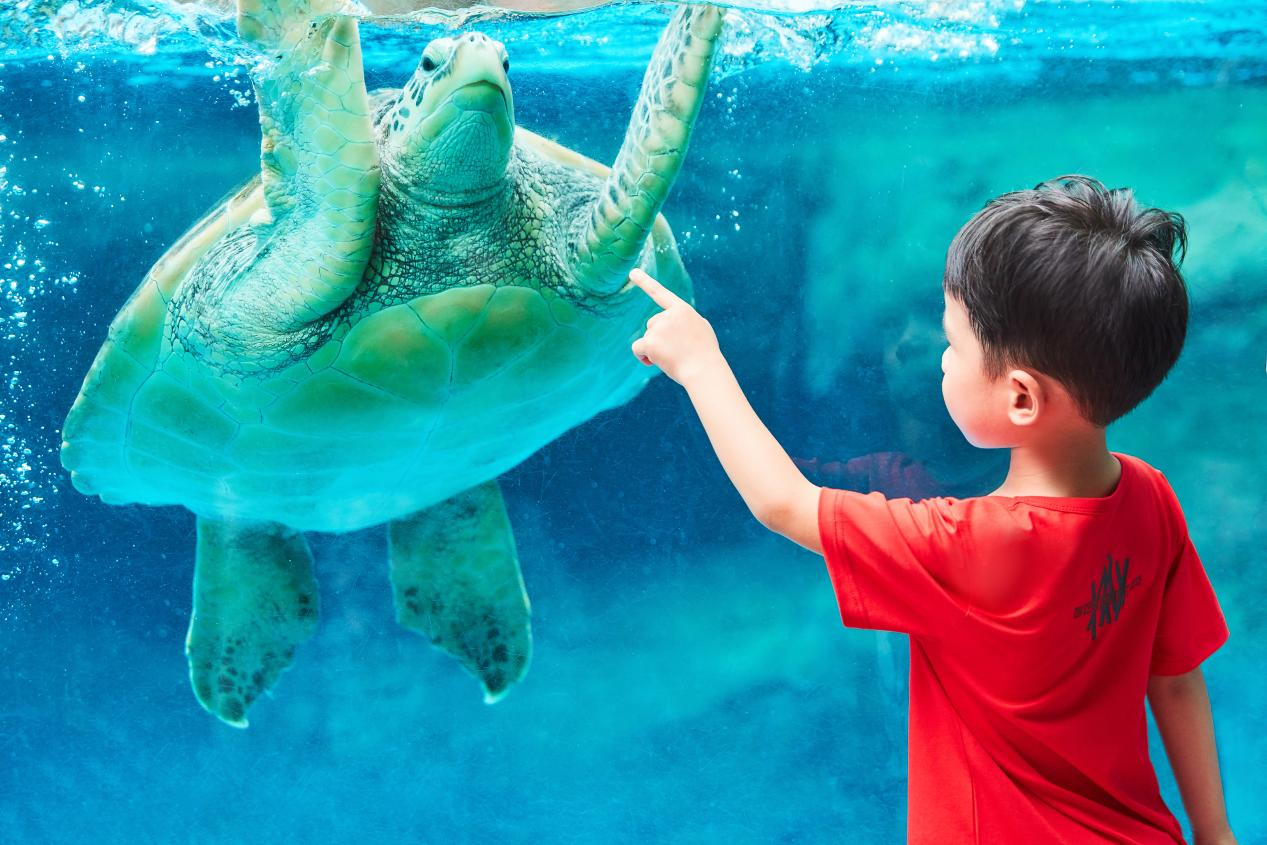 5月23日世界海龟日,在成都海昌极地海洋公园,一堂关于海龟的趣味科普课堂正在进行,听趣味科普知识、与大小海龟互动等活动,给大家现场科普了“温度为什么可以决定海龟宝宝的性别?”“绿海龟为什么叫绿海龟?”“为什么说海龟自带GPS定位系统?”等知识,吸引了众多亲子家庭的参加。公园人工繁育的数百只小海龟也于当天首次亮相展出,据悉,这些海龟是世界上现存海龟中体型最大的硬壳海龟之一——绿海龟,在公园专业保育团队的科学保育下,自2021年9月开始,成都海昌极地海洋公园已先后人工繁育了230只绿海龟,而本批次亮相的小海龟,正是它们的成员之一,其中最大的已体长17.5公分。