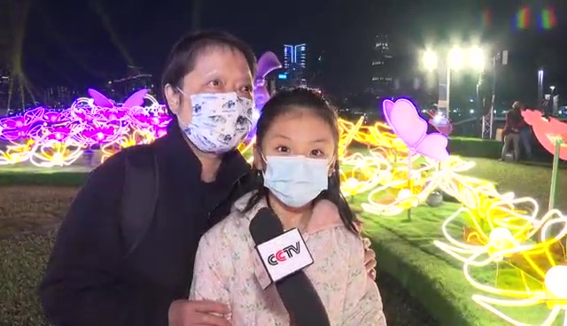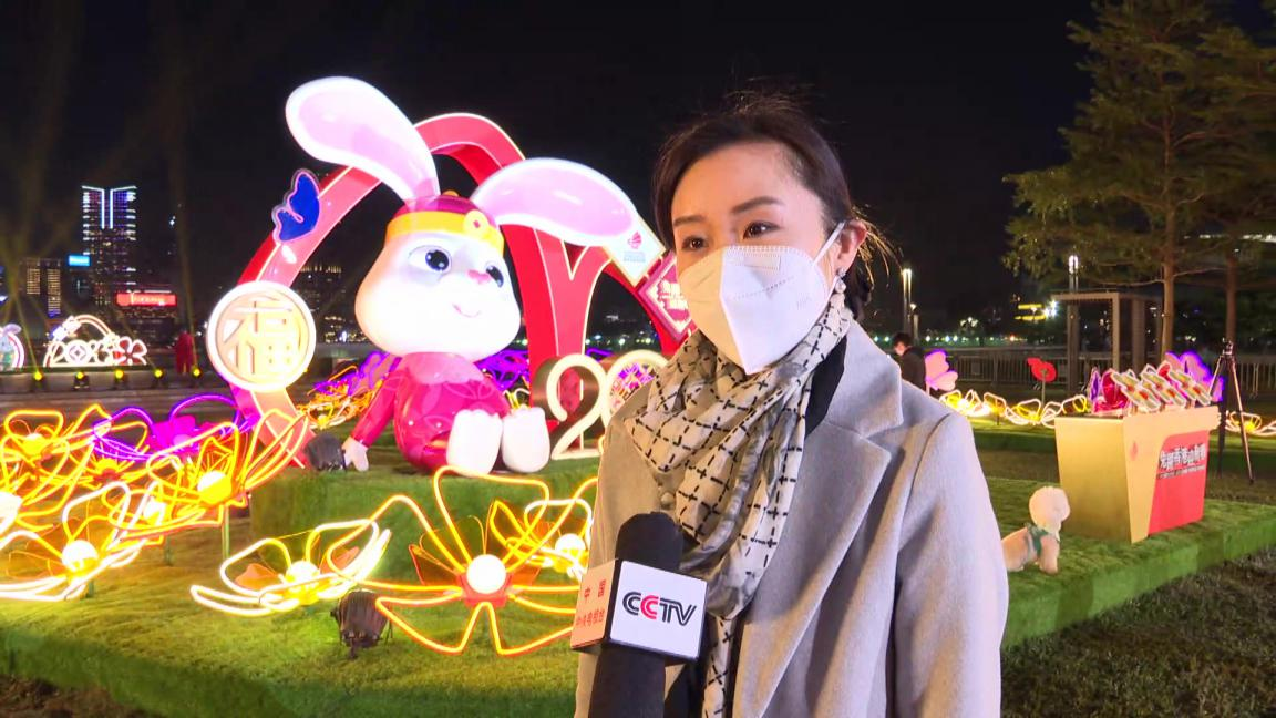 一位香港市民告诉总台记者,外孙女很喜欢小兔子,知道今天这里有兔子灯饰,就要过来拍照。这里的兔子灯饰很漂亮,小朋友觉得很开心。