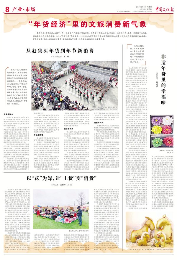 各式各样的年货凝聚着美好的情感,不仅寄托了人们对新一年的憧憬,也促进了文化传承与文旅消费的双向互动。