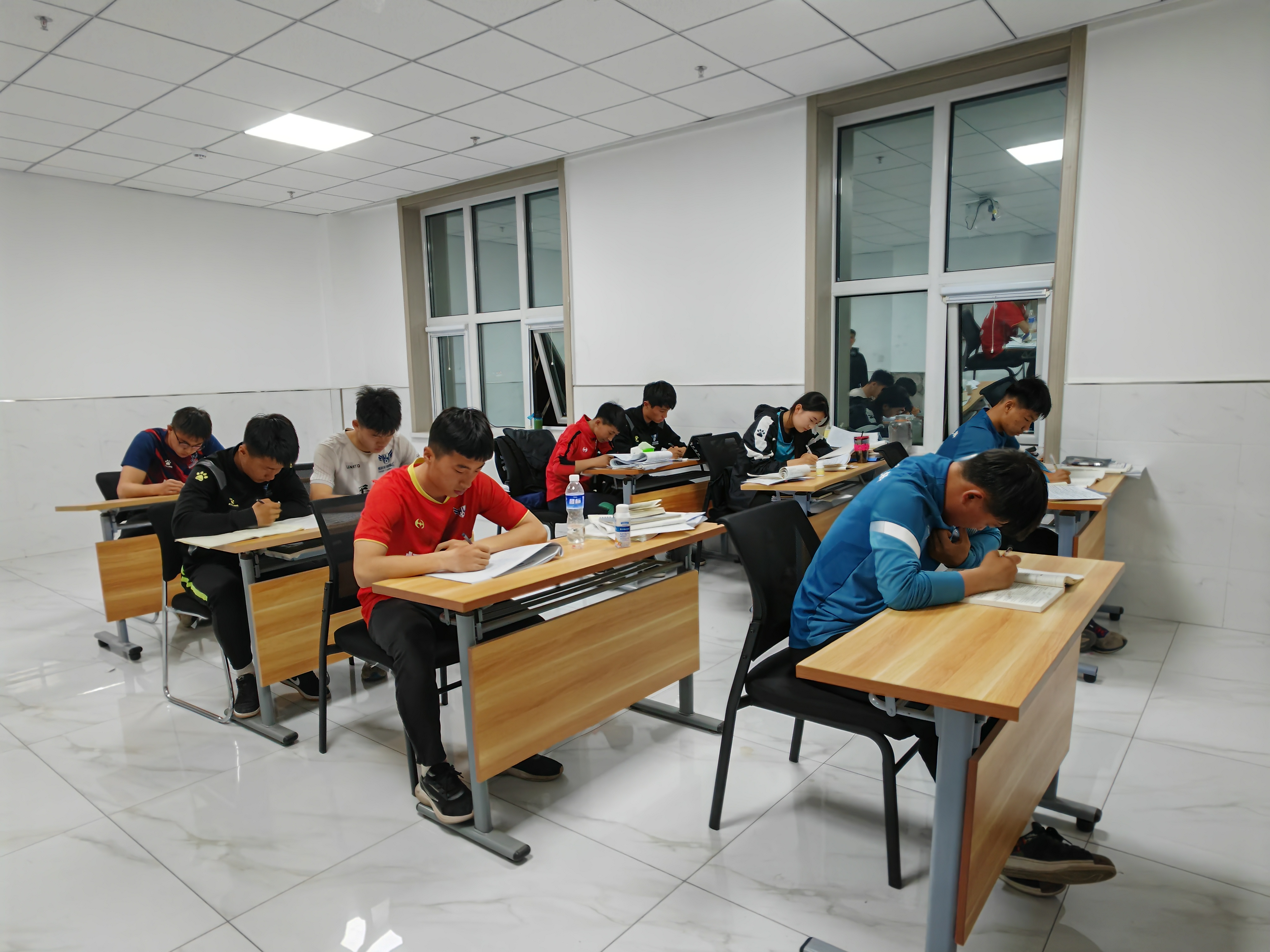 球员们在俱乐部修建的自习室里学习。新华社记者 马思嘉 摄