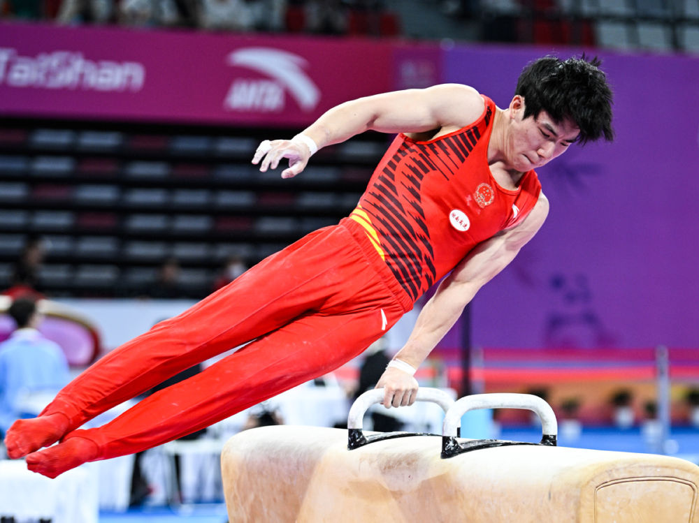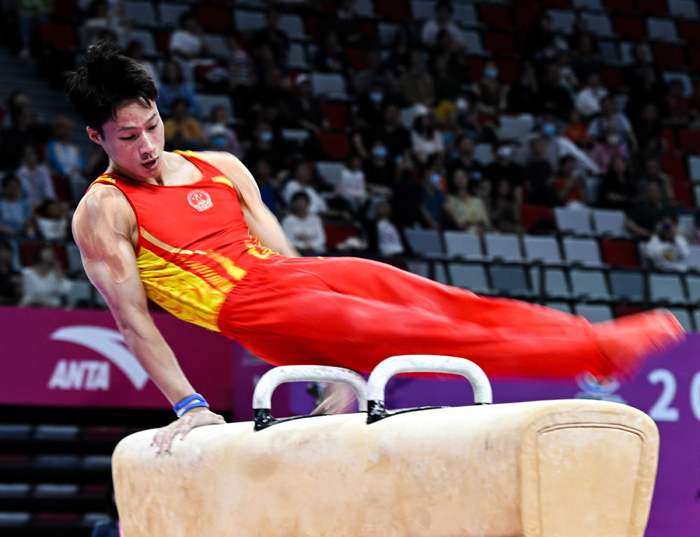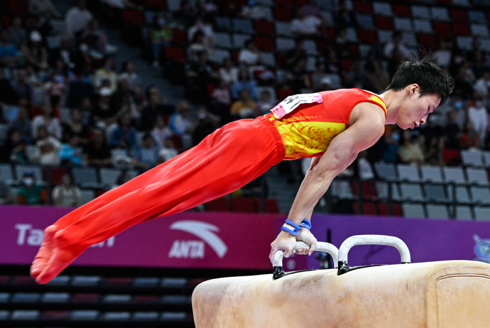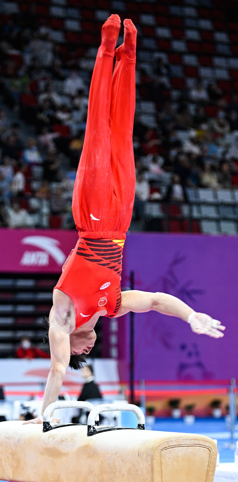 4月14日,2022年全国体操冠军赛鞍马决赛在四川成都举行。