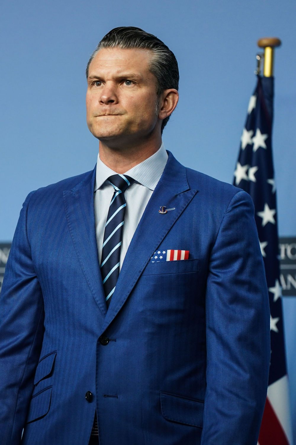 2月13日,美国国防部长赫格塞思在在比利时布鲁塞尔。新华社记者彭子洋摄