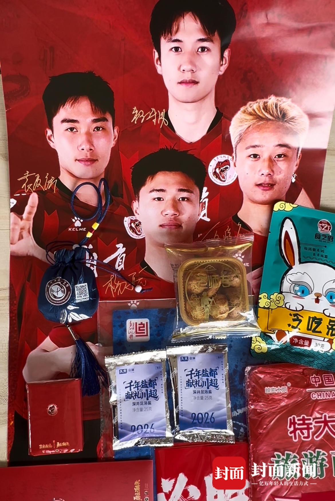 本场川超比赛为“自流井专场”,作为东道主的自贡自流井区为远道而来的客人准备了诚意满满的“宠客礼包”,内含冷吃兔、老师专面包、足浴盐、中医药香囊、球员签名背包等极具地方特色的伴手礼,尽显盐都人民的热情好客。此外还精心设置了一段浪漫的“插曲”——有多对新人川超赛场集体领证,其中一对新人恰好来自自贡和南充,自贡新郎李健与南充新娘何洵幸福感拉满,接受全场2万多球迷的热情祝福。比赛看台上,球迷新人方阵格外吸睛,以赛事见证浪漫,践行婚事新办、文明节俭的婚俗新风。