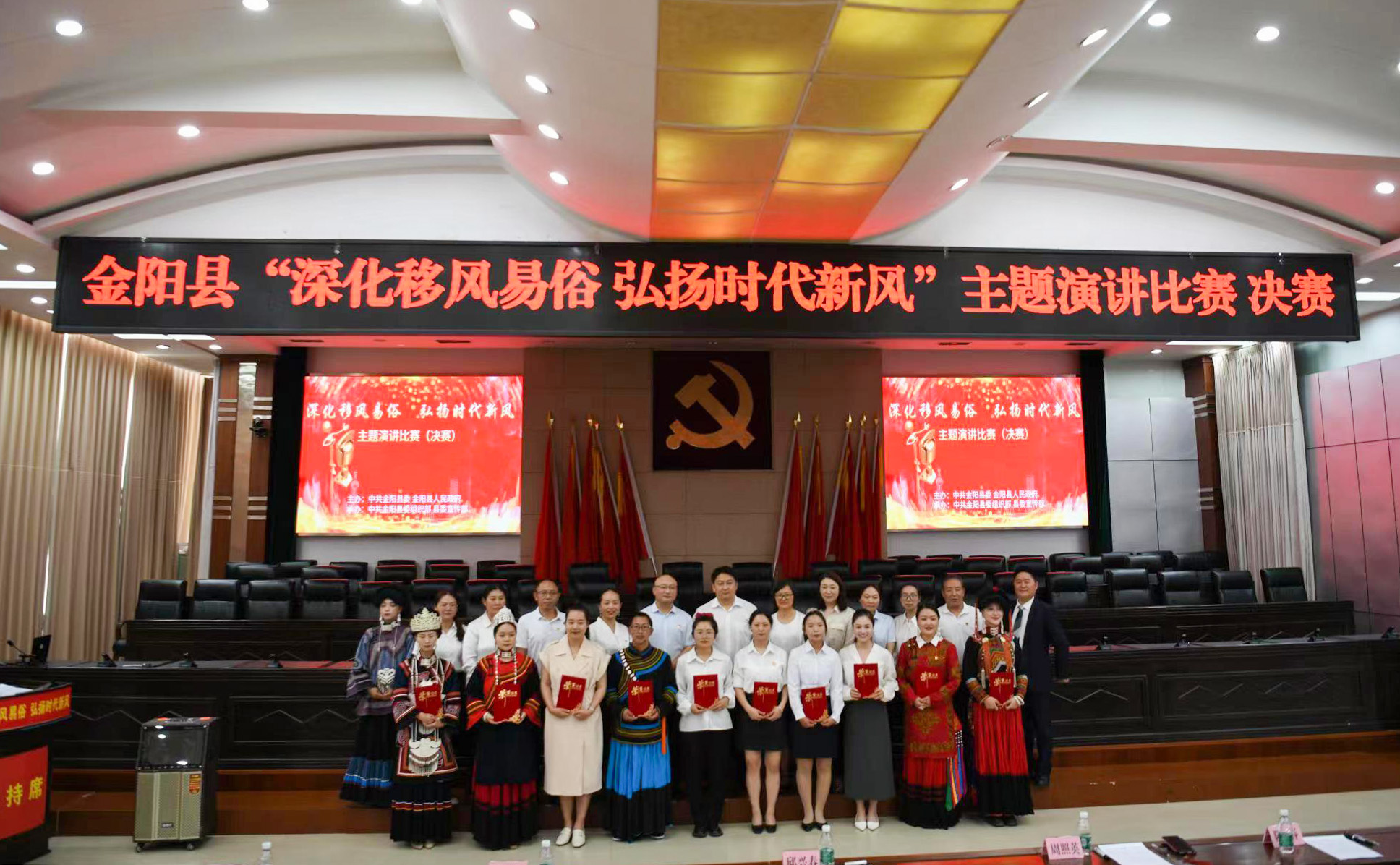 为大力倡导移风易俗,摒弃陈规陋习,弘扬文明新风,5月30日,四川省凉山州金阳县举行了“深化移风易俗 弘扬时代新风”主题演讲比赛决赛。