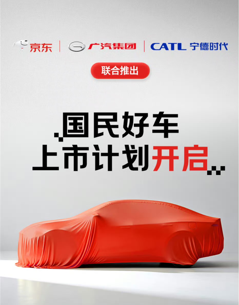 10月14日,京东宣布将联合广汽、宁德时代推出一款神秘国民好车,官方将在10月底将陆续开启内测版、大众版试驾活动,11月9日新车正式官宣发布。