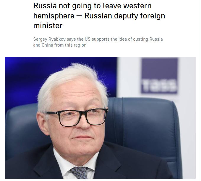 据报道,里亚布科夫表示,他与古巴方面的磋商非常重要且富有成效,俄方将继续与古巴开展合作。他强调,“无论美国怎么说,俄罗斯都不会离开西半球”。