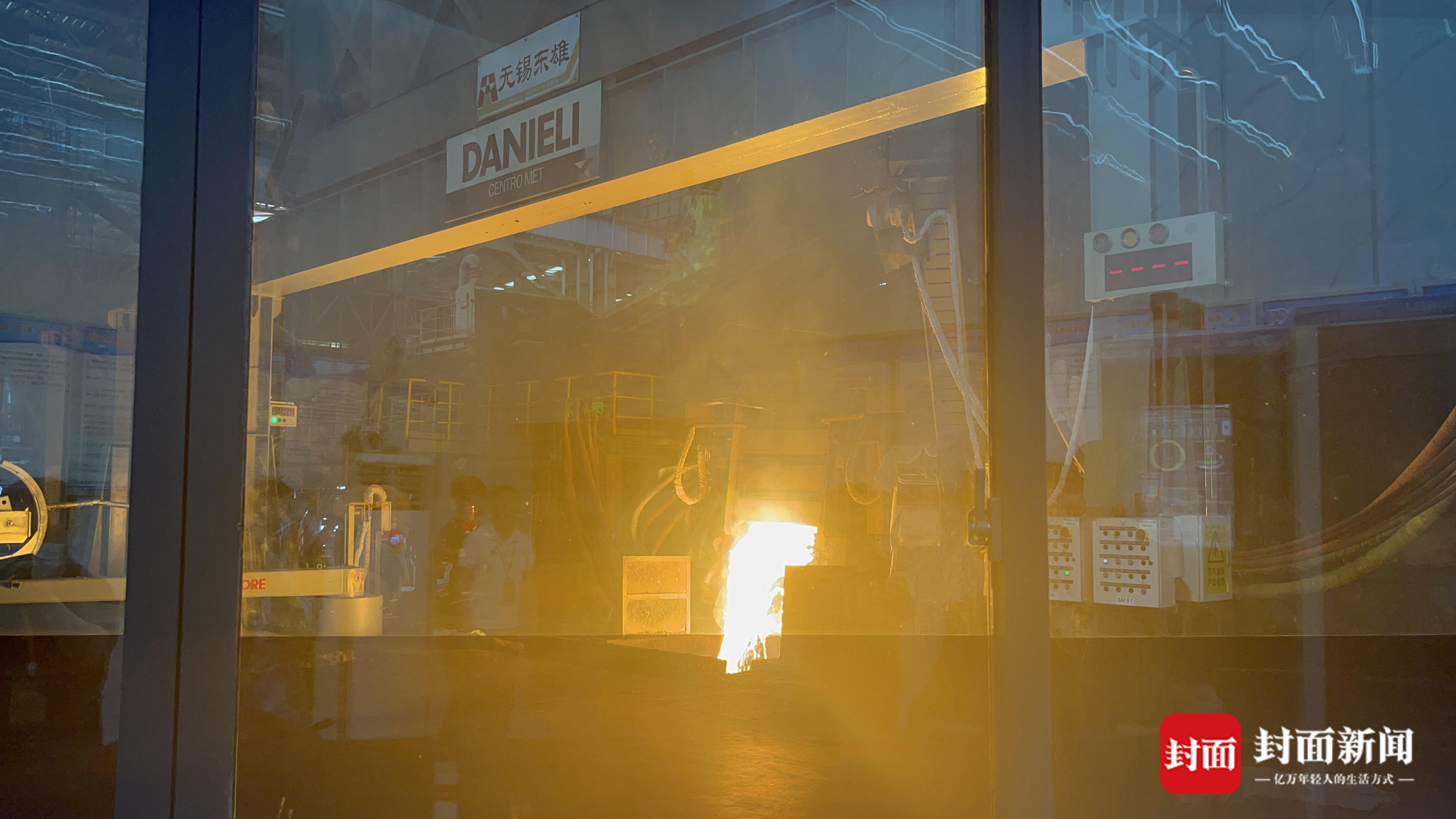 在电炉车间外,记者看到,超过1500℃的炽热钢水泛着灼人光芒,炙热的气息透过玻璃滚进鼻息。