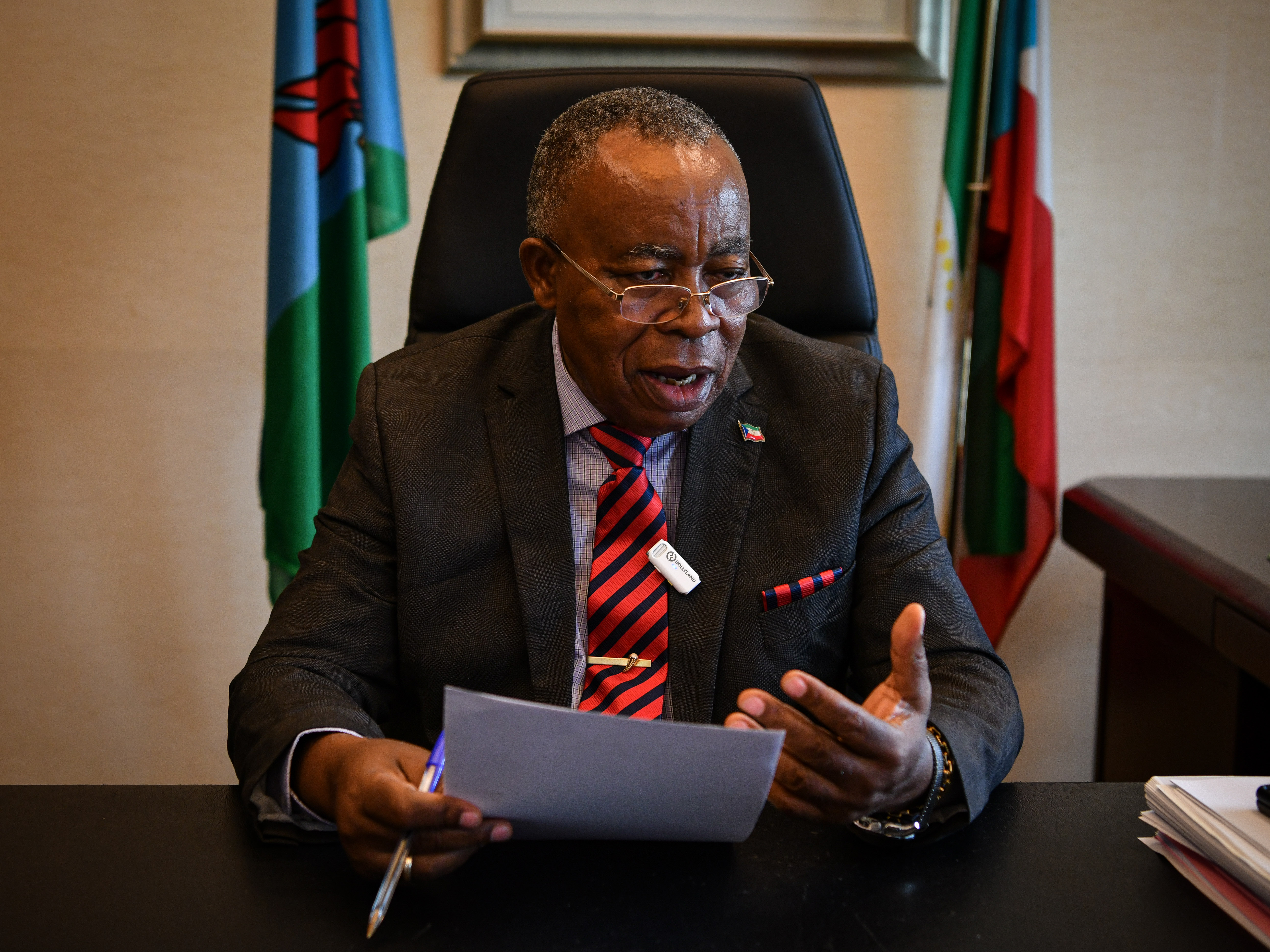 5月21日,赤道几内亚国家项目规划和跟踪办公室主任亚历杭德罗·米查·恩苏埃在马拉博接受新华社记者专访。(新华社记者韩旭摄)
