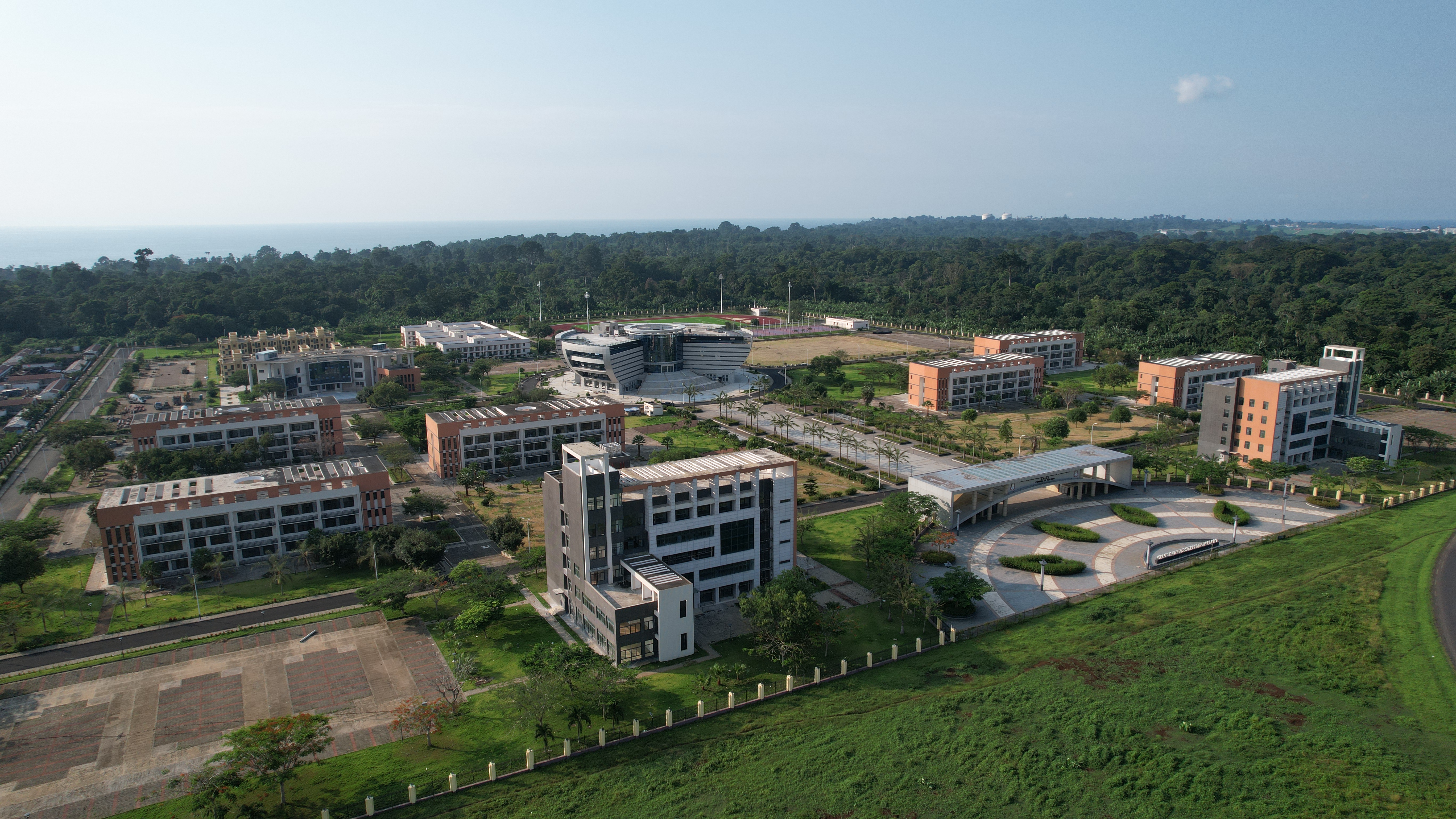 这是5月27日在赤道几内亚首都马拉博拍摄的中企承建的马拉博大学城(无人机照片)。新华社发(丘家明摄)