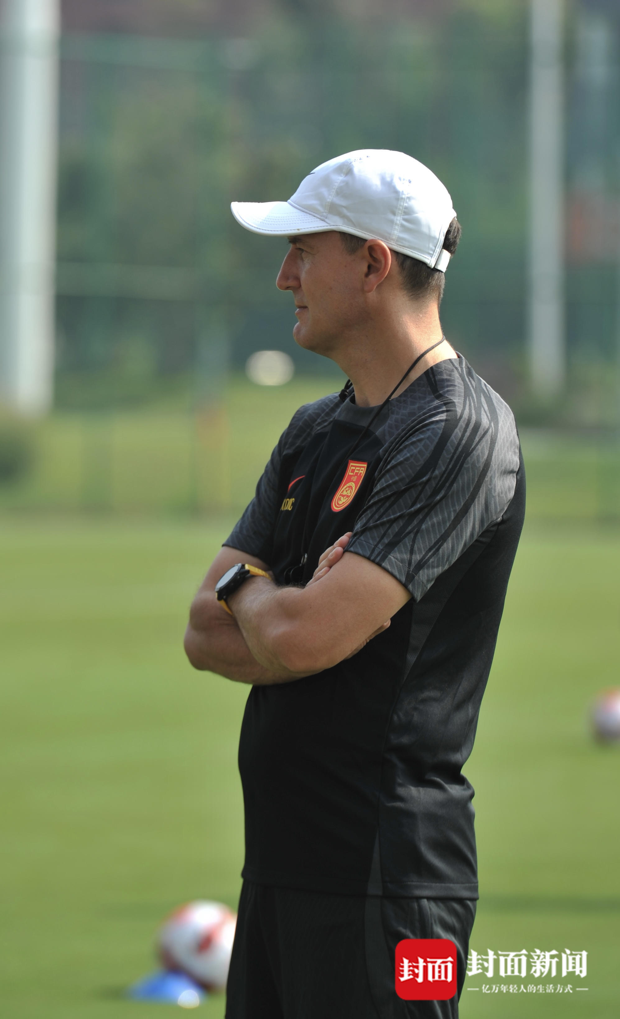 9月4日,成都城东足球公园,正在成都集训的国足进行了公开训练课,24名队员全数亮相。上午十点,主教练扬科维奇在集体训话后,国足开始了训练,折返跑、传接球、头球、抢圈,从艾克森、武磊等人脸上的笑容来看,国足队员们心情很放松。在训练间隙,扬科维奇接受采访,谈到了国足的情况和来到成都的感受。