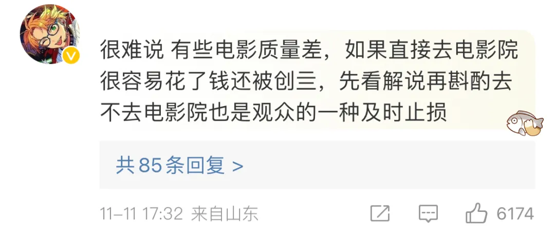 也有网友表示,电影解说可以帮助“避雷”。