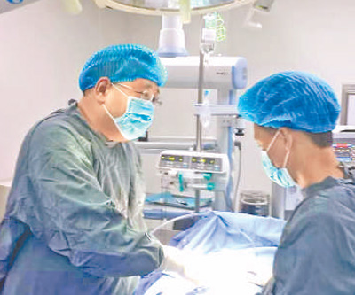 侯坤(左)正在开展手术。 旦增欧珠摄