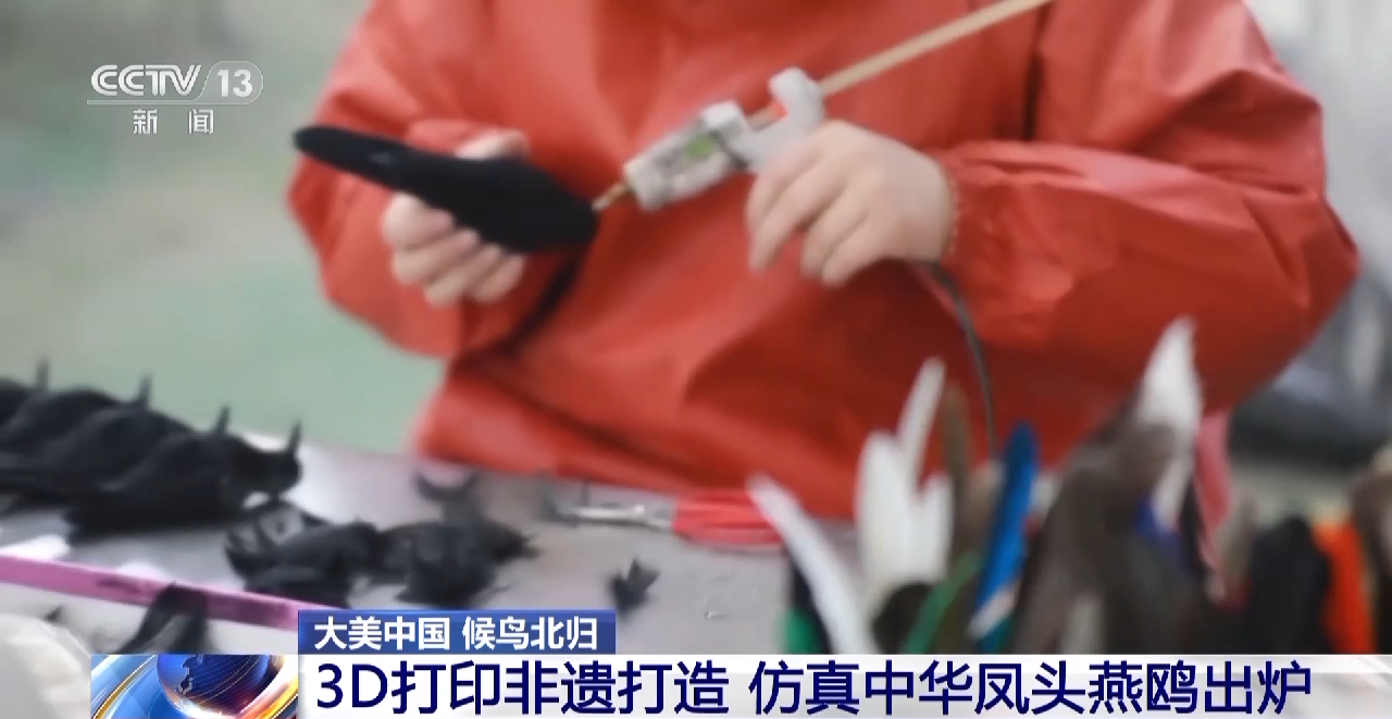经过3D打印技术,仿真鸟的雏形终于出炉了,但是画龙得点睛,仿真鸟还需要披上“毛衣”。在河南濮阳,非遗传承人接力打造仿真鸟。