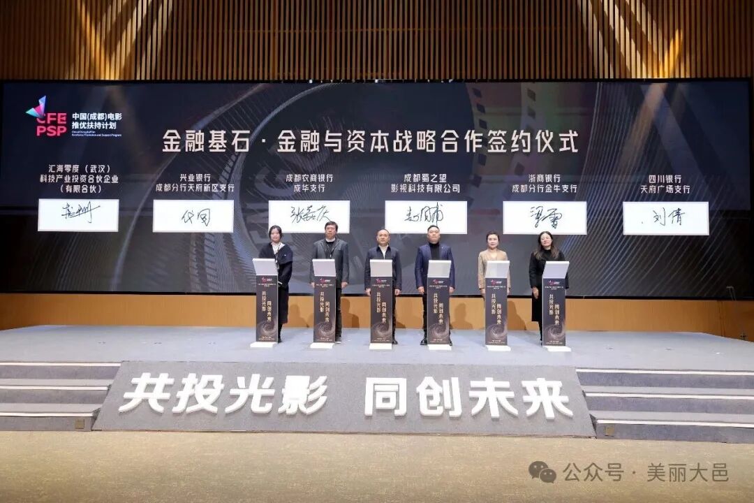 同时,成都蜀之望影视科技有限公司与成都农商银行成华支行、浙商银行成都分行金牛支行、兴业银行成都分行天府新区支行、四川银行天府广场支行、汇海零度等5家金融机构达成战略合作,致力于为影视项目提供覆盖开发、制作、宣发等环节的全周期金融支持和资本解决方案。