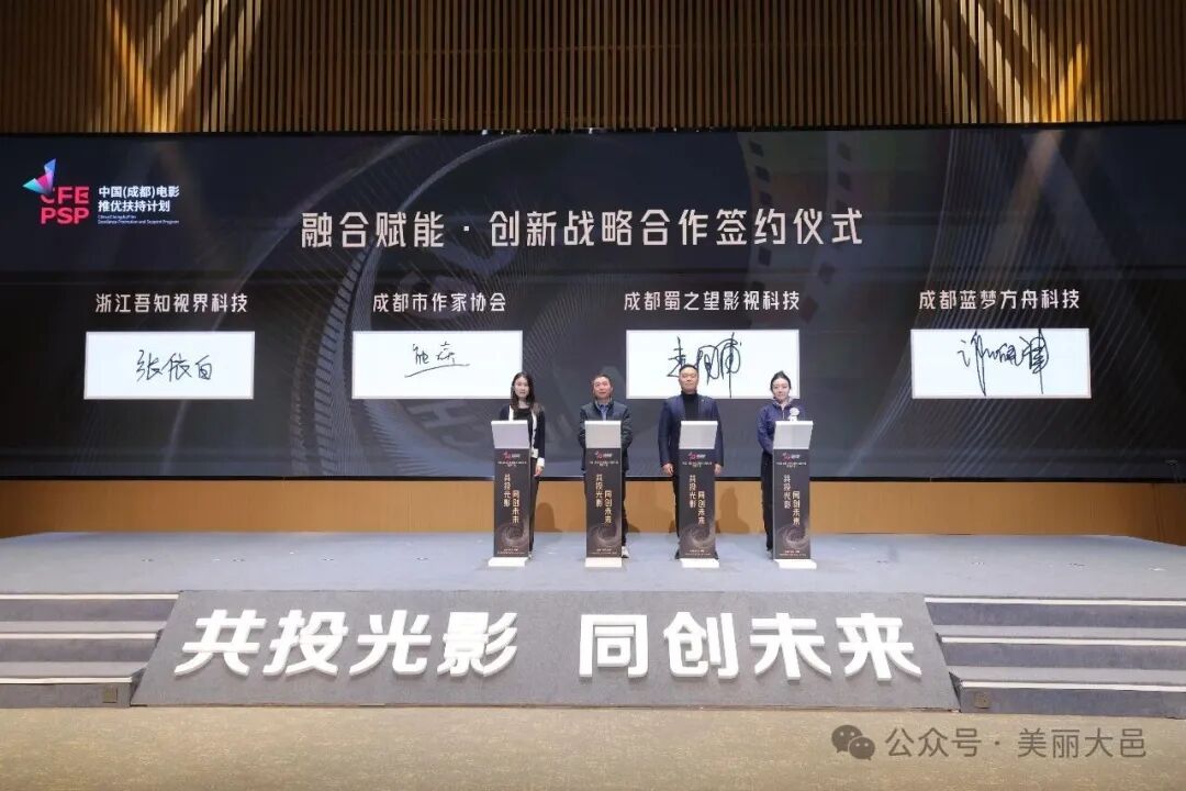成都市作家协会、浙江吾知视界科技有限公司、成都梦蓝方舟科技有限责任公司的签约合作,则开启了“电影+文学”“电影+科技”“电影+文旅”等多元融合发展的新路径。